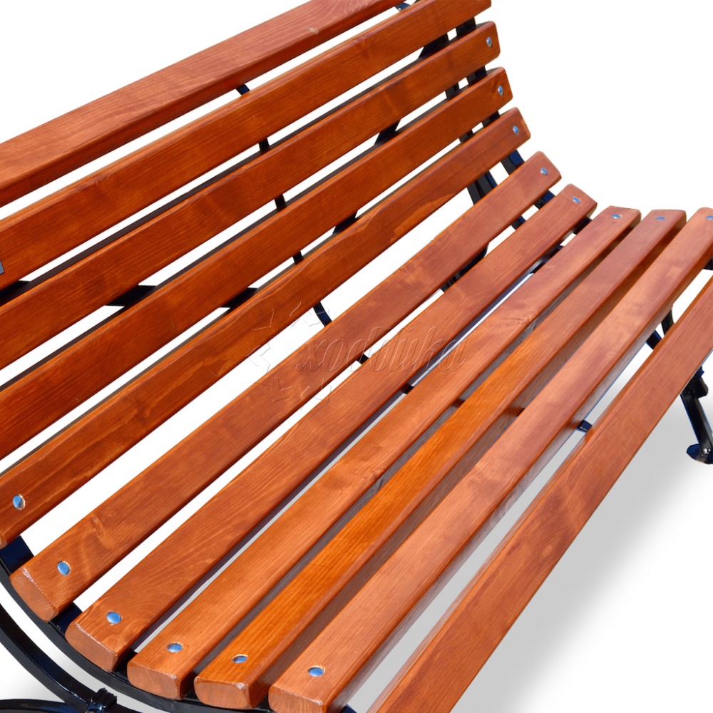 Скамейка кованая «авен» 1,2 м. Подробные характеристики Скамейка поставляется в разобранном виде! Материалы: Опоры: Cталь. Покрыты порошковой полимерной краской. Возможность выбора цвета по каталогу RAL. Стандартный цвет (по умолчанию) - черный. Сиденье и спинка: Брус из хвойных пород древесины - ангарская сосна (варианты исполнения: лиственница, композитные материалы) различного сечения. Огнебиозащитные пропитки + тонировочный состав с антисептиком + два слоя яхтного лака с промежуточным шлифованием. Возможность выбора цвета из палитры. Фурнитура: Оцинкованная. Возможность выбора цвета фурнитуры по каталогу RAL. Стандартный цвет (по умолчанию) - серебристый. Возможность использования потайной/скрытой фурнитуры. Артикул на сайте. Технические характеристики: Высота: 760 мм Ширина: 660 мм Длина: 600 - 3000 мм Высота сиденья: 430 мм Ширина сиденья: 400 мм Длина посадочного места: 600 - 3000 мм Вес версии 0,6 м: 13,8 кг Вес версии 1.2 м: 20 кг Вес версии 1.5 м: 22,5 кг Вес версии 1.8 м: 25,2 кг Вес версии 2.0 м (2 опоры): 27 кг Вес версии 2.0 м (3 опоры): 30,6 кг Вес версии 2.5 м (3 опоры): 36,2 кг Вес версии 3.0 м (3 опоры): 40,6 кг О модели Кованая скамейка Авен выделяется классическим дизайном опор. Сиденье и спинка скамейки выполнены единым полотном из деревянного бруса, что выгодно отличает ее от других моделей. Оригинальный классический дизайн позволяет ее устанавливать в парковых зонах, общественных местах и на территории частных владений. Различный спектр дополнительных опций позволяет персонализировать вашу скамейку. Вы можете заказать различную окраску деревянных и кованых элементов исходя из эстетических соображений. Выбрать различную породу древесины и при необходимости метод крепления скамейки к основанию. Выставка цветы ВДНХ 2017 Варианты цвета на выбор: , махагон, палисандр, тик,