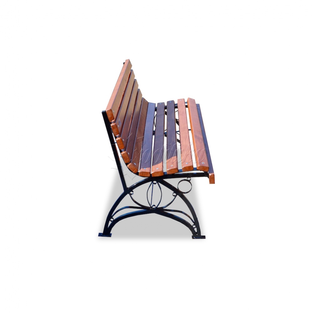 Садово-парковая скамейка «флора» 1,2 м. Подробные характеристики Скамейка поставляется в разобранном виде! Материалы: Опоры: Cталь с коваными элементами. Покрыты порошковой полимерной краской. Возможность выбора цвета по каталогу RAL. Стандартный цвет (по умолчанию) - черный. Сиденье и спинка: Брус из хвойных пород древесины - ангарская сосна (варианты исполнения: лиственница, композитные материалы) различного сечения. Огнебиозащитные пропитки + тонировочный состав с антисептиком + два слоя яхтного лака с промежуточным шлифованием. Возможность выбора цвета из палитры. Фурнитура: Оцинкованная. Возможность выбора цвета фурнитуры по каталогу RAL. Стандартный цвет (по умолчанию) - серебристый. Возможность использования потайной/скрытой фурнитуры. Технические характеристики: Высота: 750 мм Ширина: 570 мм Длина: 600 - 3000 мм Высота сиденья: 420 мм Ширина сиденья: 400 мм Длина посадочного места: 600 - 3000 мм Вес версии 0.6 м: 13.5 кг Вес версии 1.2 м: 19.6 кг Вес версии 1.5 м: 22.3 кг Вес версии 1.8 м: 24.9 кг Вес версии 2.0 м (2 опоры): 26.7 кг Вес версии 2.0 м (3 опоры): 29.2 кг Вес версии 2.5 м (3 опоры): 34.8 кг Вес версии 3.0 м (3 опоры): 39.2 кг О модели Скамейка Флора- надежна и необычна за счет неповторимого рисунка стальных опор. Хитросплетения металлических элементов несут в себе не только эстетические свойства, но и придают дополнительную прочность каркасу скамейки. Для вашего удобства мы предусмотрели несколько типов размеров, которые предполагают комфортное размещение от двух до шести человек на одной скамейке. При необходимости скамейку можно забетонировать или закрепить при помощи анкерных болтов - в случае необходимости данного вида крепления обратитесь к менеджеру при составлении заказа. Варианты цвета на выбор: , махагон, палисандр, тик,