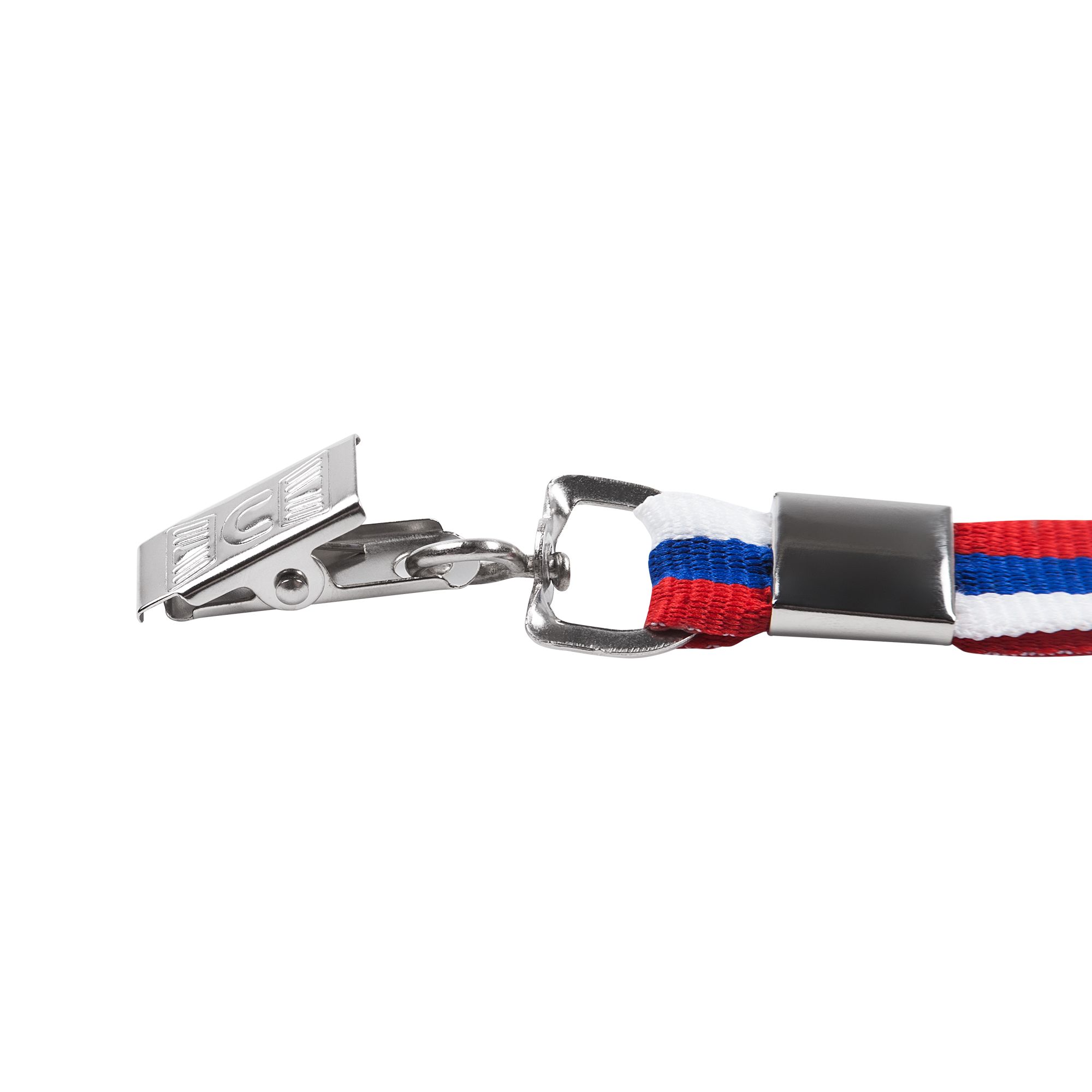 Ланьярд citizen, триколор. Размеры ширина ленты 1,6 см, длина в развернутом виде 88 см. Материал нейлон Вес (1 шт.) 13,50 г Транспортная упаковка 76,0x40,0x28,0 см Вес 27,00 кг Объем упаковки 0,085 м? Количество в упаковке 2000 шт. Виды нанесения D-Шелкография Карман для бейджа продается отдельно. Бейдж крепится к ленте с помощью металлической клипсы.