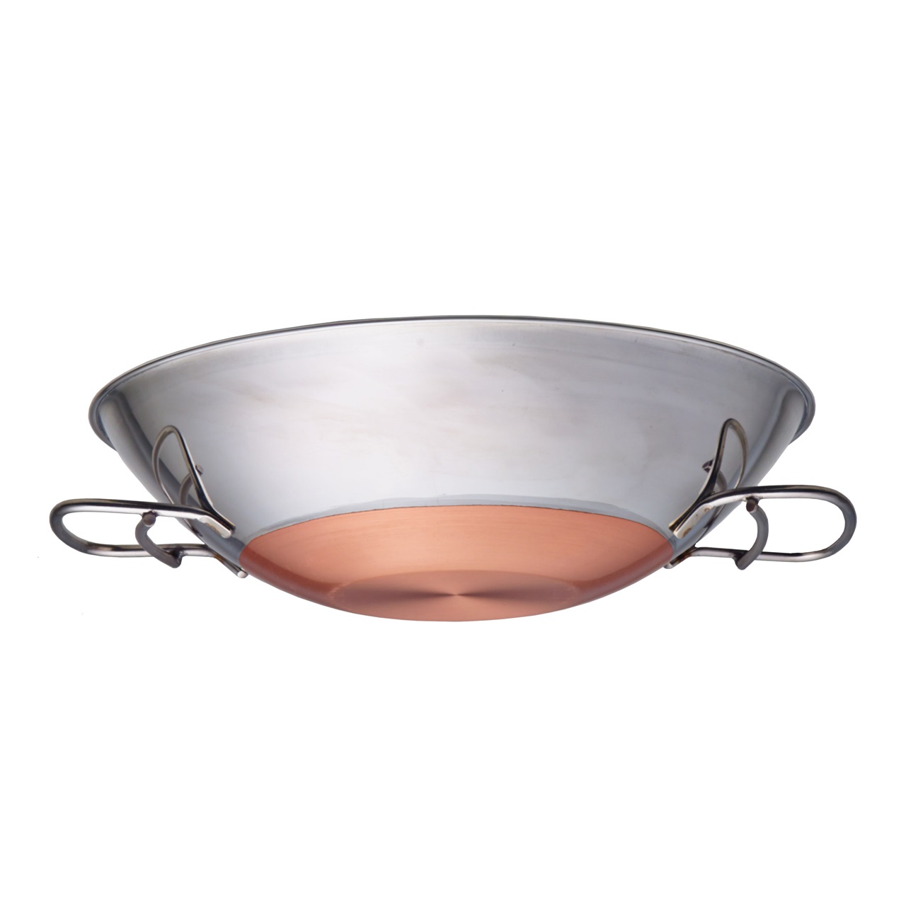 Сковорода-вок safire для сада. Сковорода вок SAfire nbsp из нержавеющей стали позволяет отмывать себя до блеска после каждого использования, и не боится никаких моющих средств. Может применяться как замена воку из углеродистой стали. Не требует закалки. Без деревянной ручки, что позволяет мыть вок в посудомоечной машине. При всём этом, остаётся сковородой Вок с правильной формой дна с медным покрытием для боле сильной теплопередачи. Высота 90 мм, диаметр 340 мм. Вид Подставки, ростеры Материал Нержавеющая сталь Вес, кг 0.3