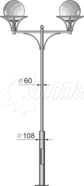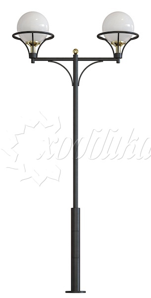 Стальной фонарный столб т-07-2 со светильником 3,415 м.. Подробные характеристики Материалы: Тумба, стойка и кронштейн: Сталь. Покрыты порошковой полимерной краской. Возможность выбора цвета по каталогу RAL. Соединительные и декоративные элементы: Сталь. Светильник: Шар 300 мм. Технические характеристики: Источник света: Патрон E-27 под лампу накаливания до 150 Вт, либо энергосберегающую лампу. Возможна комплектация ПРА под Nat70, Nat100, ДРЛ80, ДРЛ125 и источником света. Возможно комплектование светодиодными модулями. Высота: от 3,415 до 4,915 м Вес: от 40 кг Монтаж столба на объекте производится путем бетонирования стойки или закладной детали, с последующим креплением столба болтовым соединением. Фонарный столб имеет ревизионное окошко для обслуживания электрической цепи. Закладной фундамент заказывается отдельно и в цену не входит. О модели Используется в качестве функционального и декоративного освещения улиц, парков, проспектов, скверов, дворов и других общественных мест. Подходит как для дачи и сада, так и для мест муниципального назначения. Монтаж столба на объекте производится путем бетонирования стойки или закладной детали, с последующим креплением столба болтовым соединением.