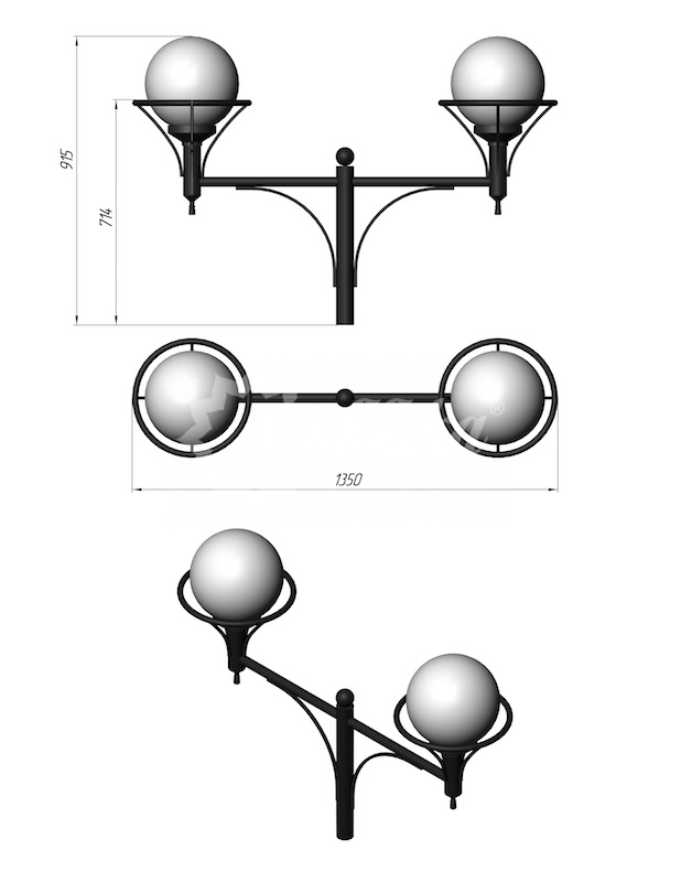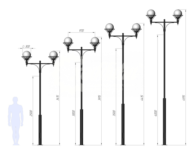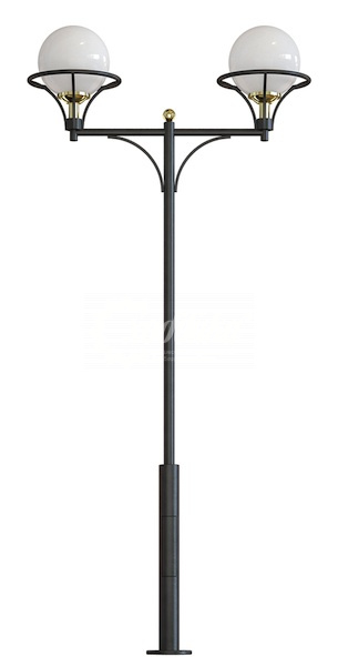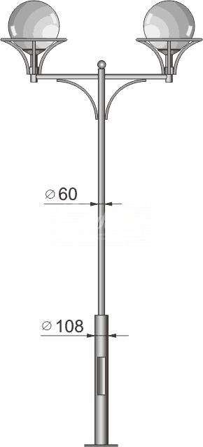 Стальной фонарный столб т-07-2 со светильниками 4,915 м. Подробные характеристики Материалы: Тумба, стойка и кронштейн: Сталь. Покрыты порошковой полимерной краской. Возможность выбора цвета по каталогу RAL. Соединительные и декоративные элементы: Сталь. Светильник: Шар 300 мм. Технические характеристики: Источник света: Патрон E-27 под лампу накаливания до 150 Вт, либо энергосберегающую лампу. Возможна комплектация ПРА под Nat70, Nat100, ДРЛ80, ДРЛ125 и источником света. Возможно комплектование светодиодными модулями. Высота: от 3,415 до 4,915 м Вес: от 40 кг Монтаж столба на объекте производится путем бетонирования стойки или закладной детали, с последующим креплением столба болтовым соединением. Фонарный столб имеет ревизионное окошко для обслуживания электрической цепи. Закладной фундамент заказывается отдельно и в цену не входит. О модели Используется в качестве функционального и декоративного освещения улиц, парков, проспектов, скверов, дворов и других общественных мест. Подходит как для дачи и сада, так и для мест муниципального назначения. Монтаж столба на объекте производится путем бетонирования стойки или закладной детали, с последующим креплением столба болтовым соединением.
