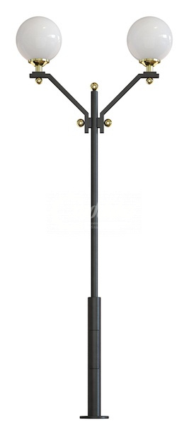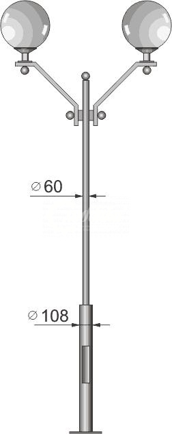 Стальной фонарный столб т-08-2 со светильниками 5,61 м. Подробные характеристики Материалы: Тумба, стойка и кронштейн: Сталь. Покрыты порошковой полимерной краской. Возможность выбора цвета по каталогу RAL. Соединительные и декоративные элементы: Сталь. Светильник: Шар 400 мм Технические характеристики: Источник света: Патрон E-27 под лампу накаливания до 150 Вт, либо энергосберегающую лампу. Возможна комплектация ПРА под Nat70, Nat100, ДРЛ80, ДРЛ125 и источником света. Возможно комплектование светодиодными модулями. Высота: 4,61 м Вес: от 51 кг Монтаж столба на объекте производится путем бетонирования стойки или закладной детали, с последующим креплением столба болтовым соединением. Фонарный столб имеет ревизионное окошко для обслуживания электрической цепи. Закладной фундамент заказывается отдельно и в цену не входит. О модели Используется в качестве функционального и декоративного освещения улиц, парков, проспектов, скверов, дворов и других общественных мест. Подходит как для дачи и сада, так и для мест муниципального назначения. Монтаж столба на объекте производится путем бетонирования стойки или закладной детали, с последующим креплением столба болтовым соединением.