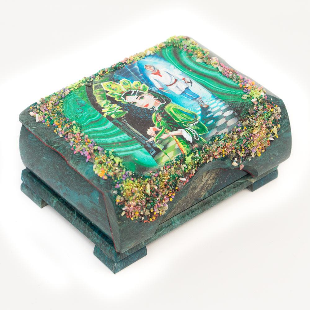 Шкатулка хозяйка медной горы змеевик 16,5х12х8 см