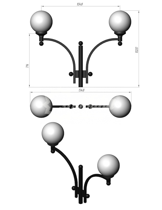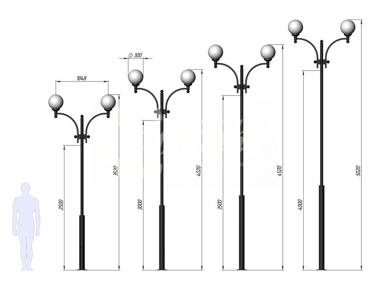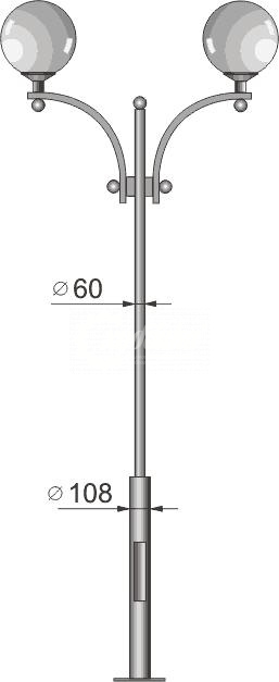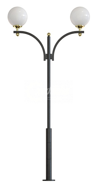 Стальной фонарный столб т-10-2 со светильниками 4,02 м. Подробные характеристики Материалы: Тумба, стойка и кронштейн: Сталь. Покрыты порошковой полимерной краской. Возможность выбора цвета по каталогу RAL. Соединительные и декоративные элементы: Сталь. Светильник: Шар 300 мм. Технические характеристики: Источник света: Патрон E-27 под лампу накаливания до 150 Вт, либо энергосберегающую лампу. Возможна комплектация ПРА под Nat70, Nat100, ДРЛ80, ДРЛ125 и источником света. Возможно комплектование светодиодными модулями. Высота: 3,52 м Вес: от 41 кг Монтаж столба на объекте производится путем бетонирования стойки или закладной детали, с последующим креплением столба болтовым соединением. Фонарный столб имеет ревизионное окошко для обслуживания электрической цепи. Закладной фундамент заказывается отдельно и в цену не входит. О модели Используется в качестве функционального и декоративного освещения улиц, парков, проспектов, скверов, дворов и других общественных мест. Подходит как для дачи и сада, так и для мест муниципального назначения. Монтаж столба на объекте производится путем бетонирования стойки или закладной детали, с последующим креплением столба болтовым соединением.