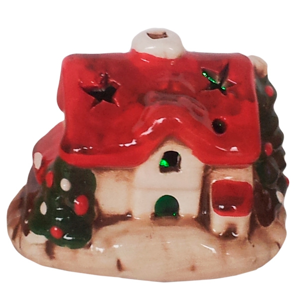 Фигурка декоративная домик санты со светодиодной подсветко...