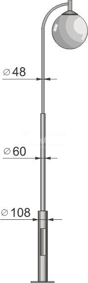Стальной фонарный столб т-21 со светильником 4,548 м. Подробные характеристики Материалы: Тумба, стойка и кронштейн: Сталь. Покрыты порошковой полимерной краской. Возможность выбора цвета по каталогу RAL. Соединительные и декоративные элементы: Сталь. Светильник: Шар 400 мм. Технические характеристики: Источник света: Патрон E-27 под лампу накаливания до 150 Вт, либо энергосберегающую лампу. Возможна комплектация ПРА под Nat70, Nat100, ДРЛ80, ДРЛ125 и источником света. Возможно комплектование светодиодными модулями. Высота: от 4,048 до 6,048 м Вес: от 26 кг Монтаж столба на объекте производится путем бетонирования стойки или закладной детали, с последующим креплением столба болтовым соединением. Фонарный столб имеет ревизионное окошко для обслуживания электрической цепи. Закладной фундамент заказывается отдельно и в цену не входит. О модели Используется в качестве функционального и декоративного освещения улиц, парков, проспектов, скверов, дворов и других общественных мест. Подходит как для дачи и сада, так и для мест муниципального назначения. Монтаж столба на объекте производится путем бетонирования стойки или закладной детали, с последующим креплением столба болтовым соединением.