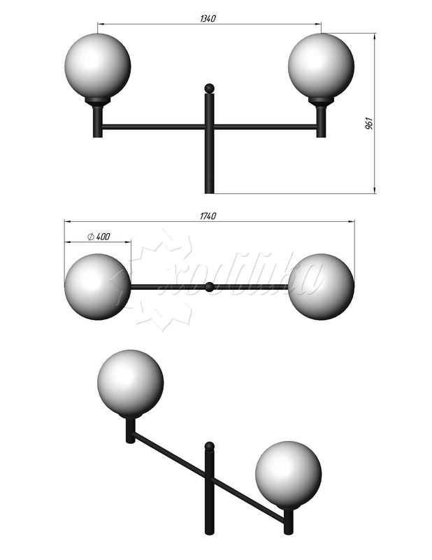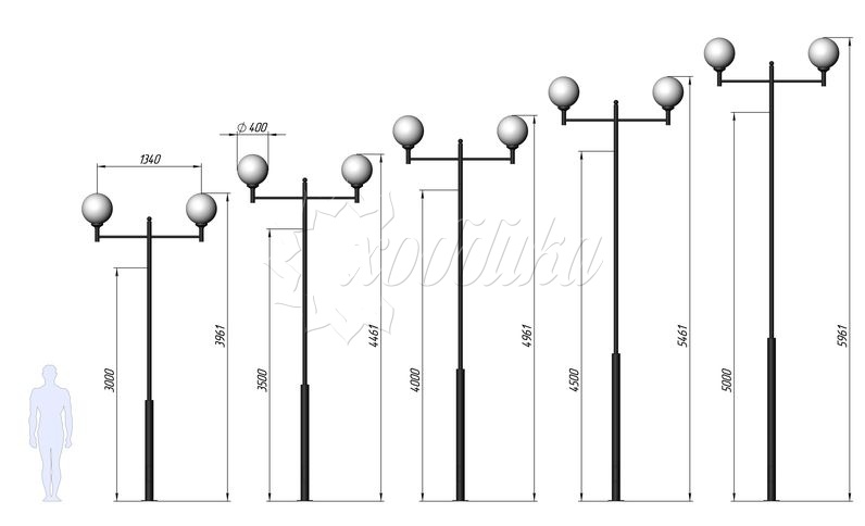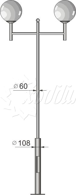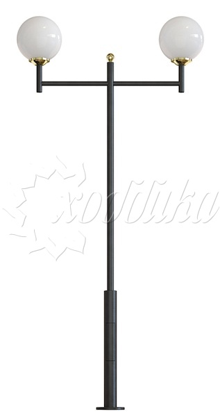 Стальной фонарный столб т-30-2 со светильниками 3,961 м.. Подробные характеристики Материалы: Тумба, стойка и кронштейн: Сталь. Покрыты порошковой полимерной краской. Возможность выбора цвета по каталогу RAL. Соединительные и декоративные элементы: Сталь. Светильник: Шар 400 мм. Технические характеристики: Источник света: Патрон E-27 под лампу накаливания до 150 Вт, либо энергосберегающую лампу. Возможна комплектация ПРА под Nat70, Nat100, ДРЛ80, ДРЛ125 и источником света. Возможно комплектование светодиодными модулями. Высота: от 3,961 до 5,961 м Вес: от 43 кг Монтаж столба на объекте производится путем бетонирования стойки или закладной детали, с последующим креплением столба болтовым соединением. Фонарный столб имеет ревизионное окошко для обслуживания электрической цепи. Закладной фундамент заказывается отдельно и в цену не входит. О модели Используется в качестве функционального и декоративного освещения улиц, парков, проспектов, скверов, дворов и других общественных мест. Подходит как для дачи и сада, так и для мест муниципального назначения. Монтаж столба на объекте производится путем бетонирования стойки или закладной детали, с последующим креплением столба болтовым соединением.