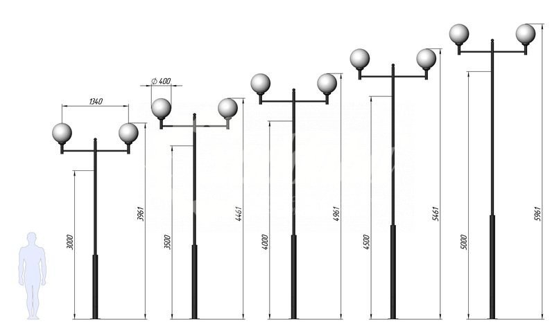 Стальной фонарный столб т-30-2 со светильниками 3,961 м. Подробные характеристики Материалы: Тумба, стойка и кронштейн: Сталь. Покрыты порошковой полимерной краской. Возможность выбора цвета по каталогу RAL. Соединительные и декоративные элементы: Сталь. Светильник: Шар 400 мм. Технические характеристики: Источник света: Патрон E-27 под лампу накаливания до 150 Вт, либо энергосберегающую лампу. Возможна комплектация ПРА под Nat70, Nat100, ДРЛ80, ДРЛ125 и источником света. Возможно комплектование светодиодными модулями. Высота: от 3,961 до 5,961 м Вес: от 43 кг Монтаж столба на объекте производится путем бетонирования стойки или закладной детали, с последующим креплением столба болтовым соединением. Фонарный столб имеет ревизионное окошко для обслуживания электрической цепи. Закладной фундамент заказывается отдельно и в цену не входит. О модели Используется в качестве функционального и декоративного освещения улиц, парков, проспектов, скверов, дворов и других общественных мест. Подходит как для дачи и сада, так и для мест муниципального назначения. Монтаж столба на объекте производится путем бетонирования стойки или закладной детали, с последующим креплением столба болтовым соединением.