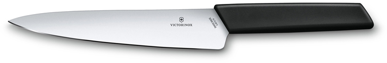 Описание: Нож разделочный VICTORINOX Swiss Modern, прямое лезвие из нержавеющей стали 19 см, рукоять из синтетического материала чёрного цвета, в блистере