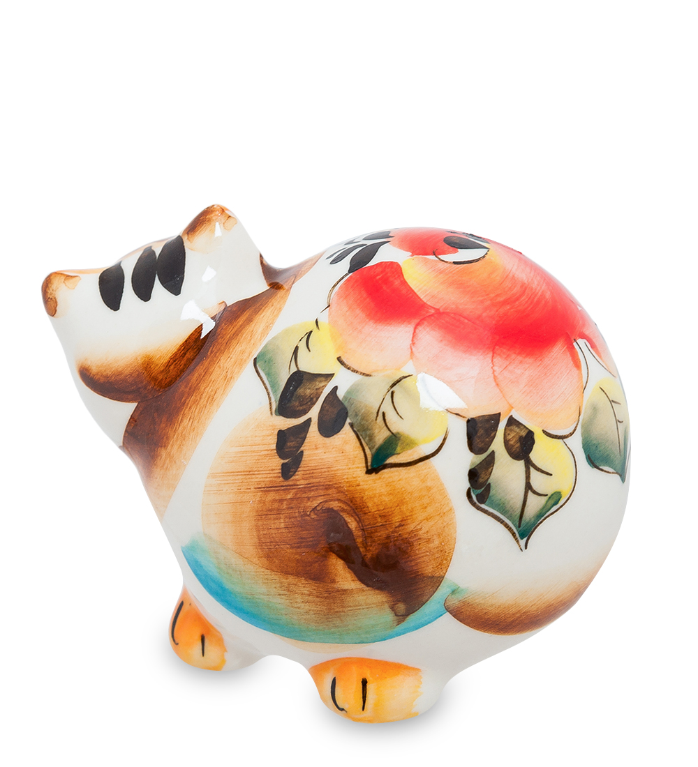 Гл-178 фигурка кот-колобок цв. (гжельский фарфор)