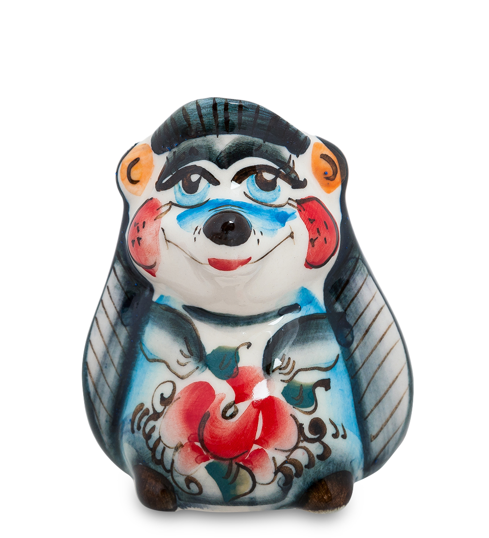 Гл-114 подставка для зубочисток ежик цв. (гжельский фарфор).