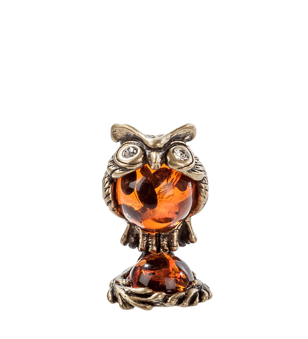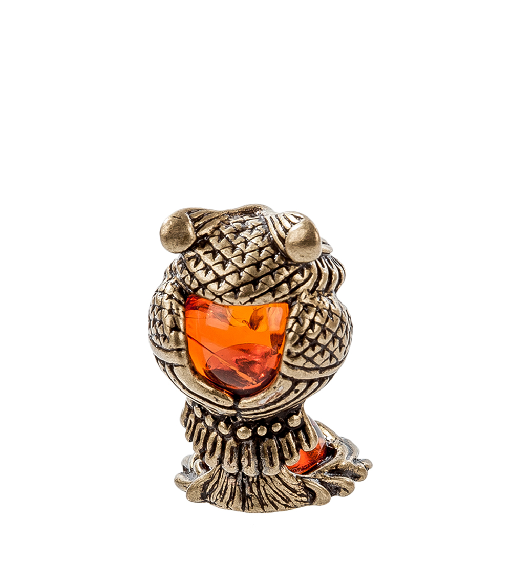 Am-593 фигурка филин на подставке мал. (латунь, янтарь)