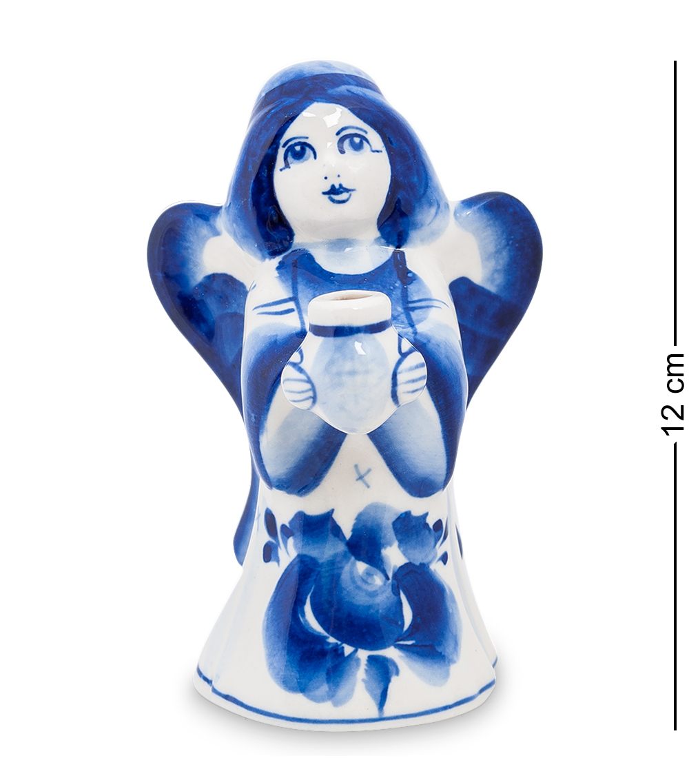 Гл-109 подсвечник ангел (гжельский фарфор)