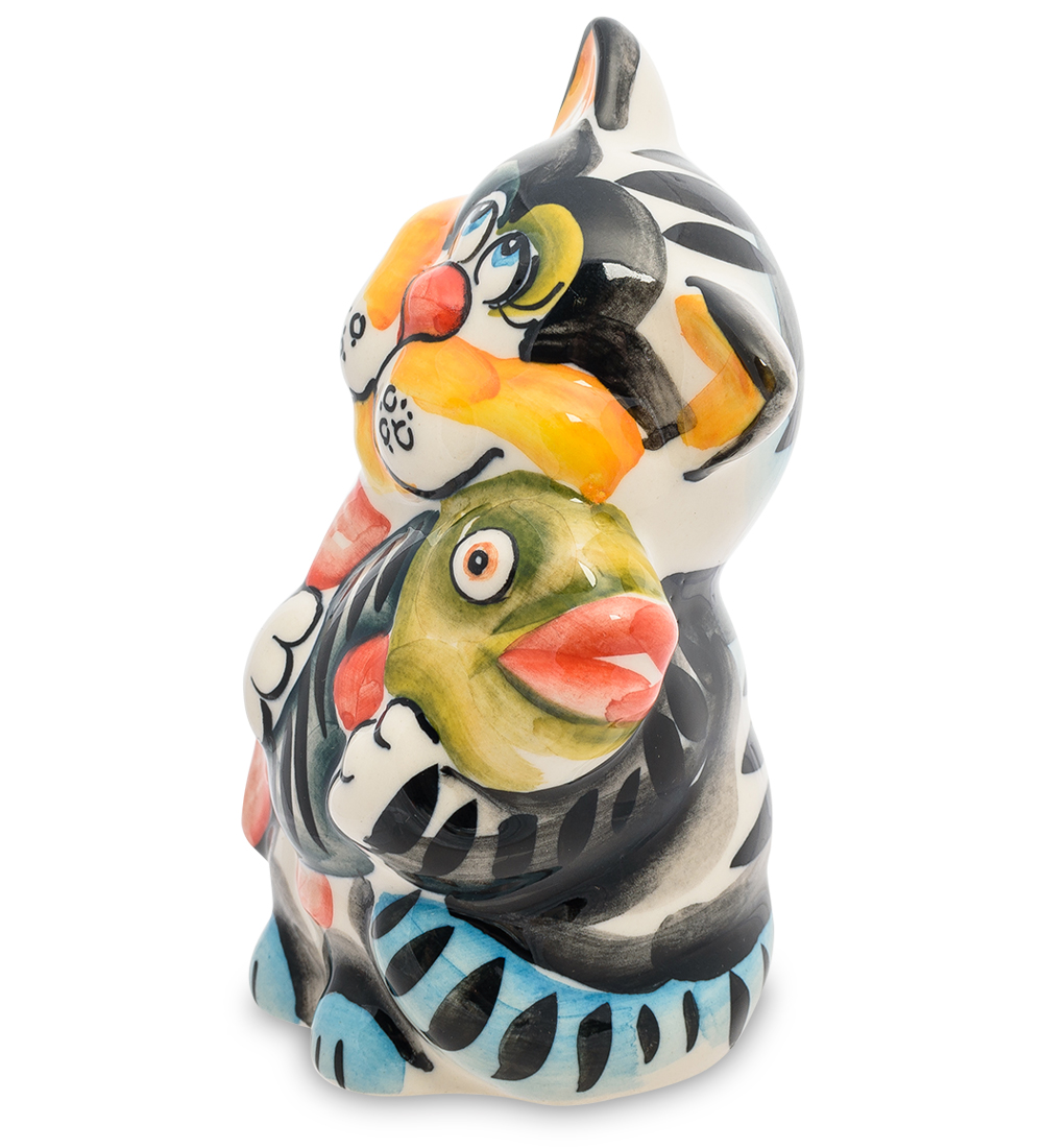Гл-193 фигурка кот-рыболов цв. (гжельский фарфор)
