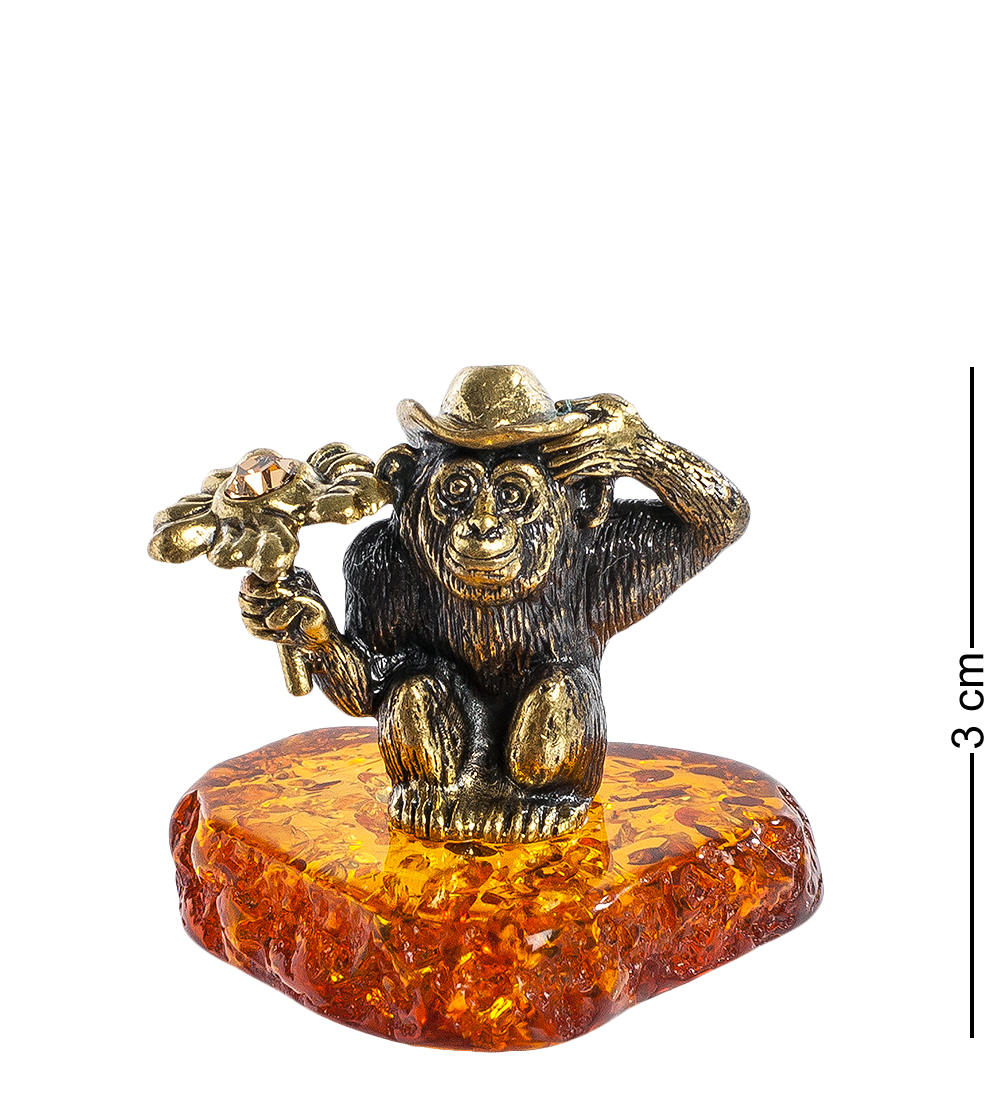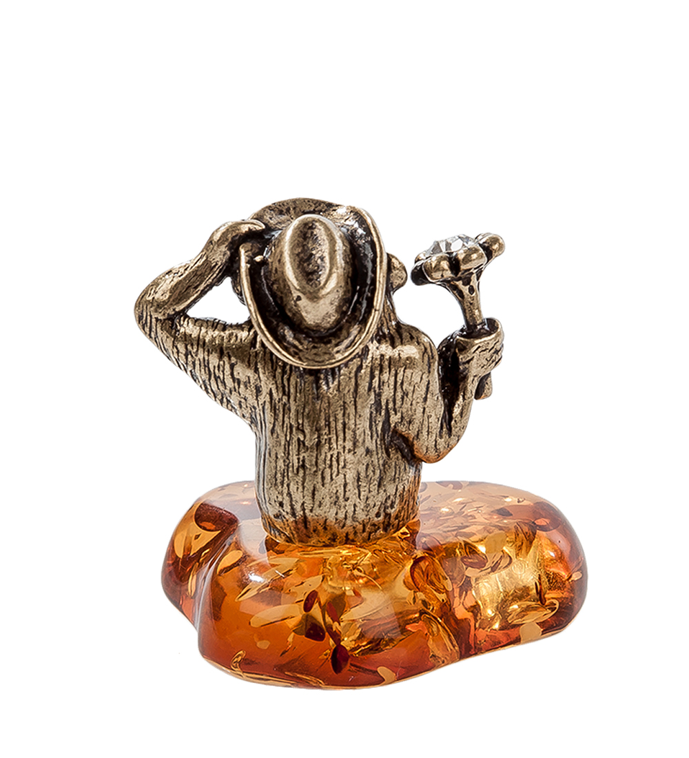 Am- 481 фигурка обезьяна с цветком (латунь, янтарь)