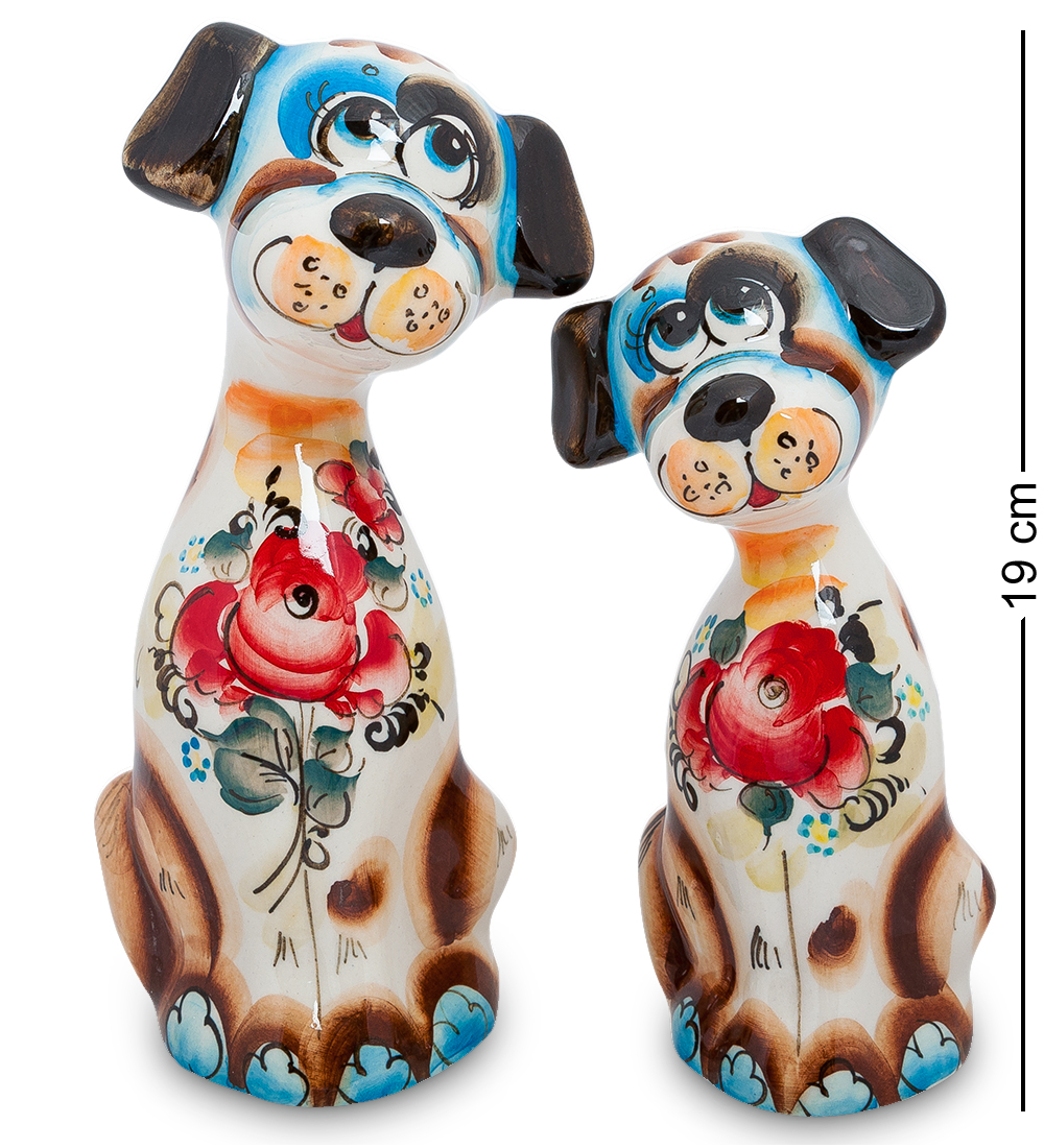 Гл-236 фигурка пара -собак бол. цв. (гжельский фарфор)