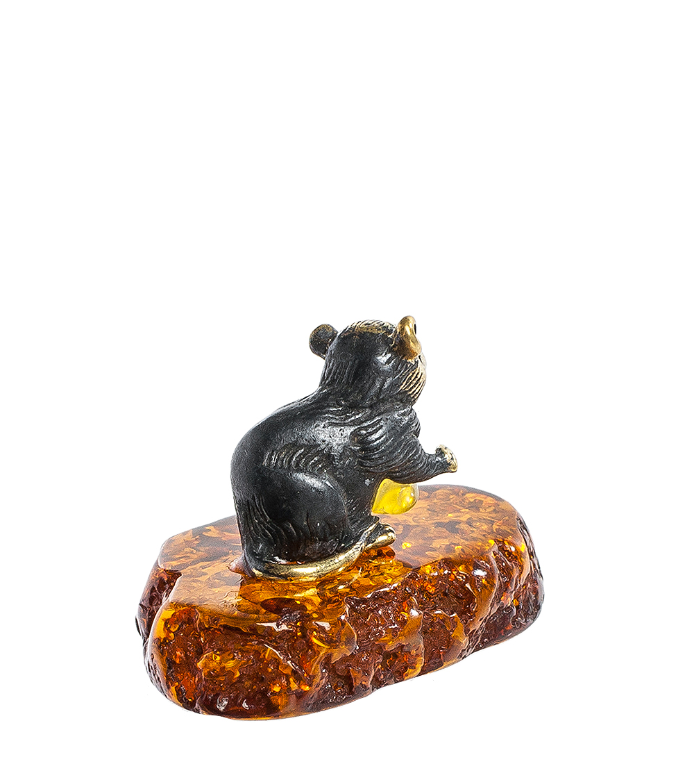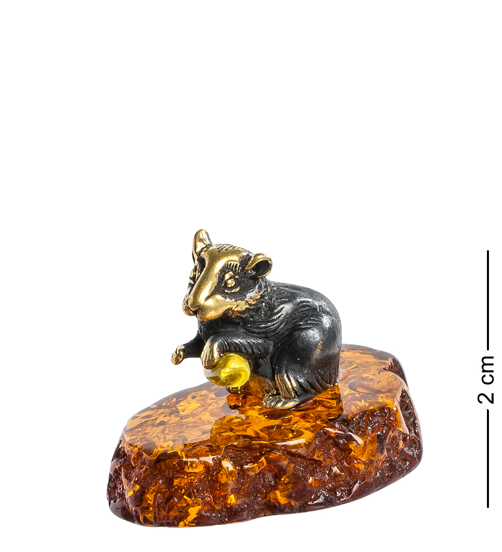 Am-469 фигурка мышь с зернышком (латунь, янтарь)