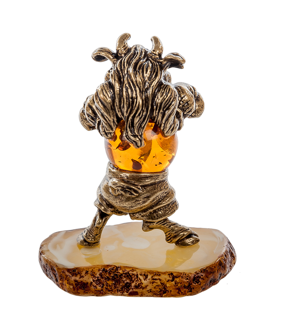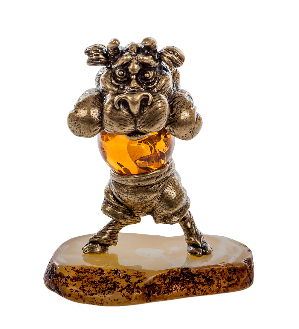 Am-230 фигурка бык боксер (латунь, янтарь)