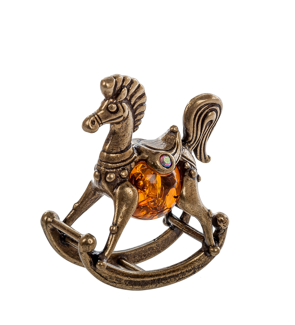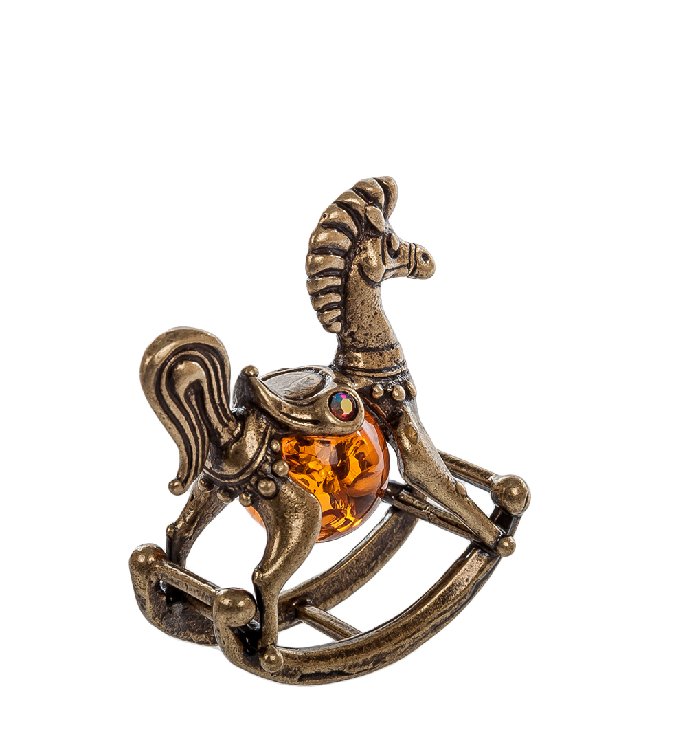 Am-414 фигурка лошадка-качалка (латунь, янтарь)