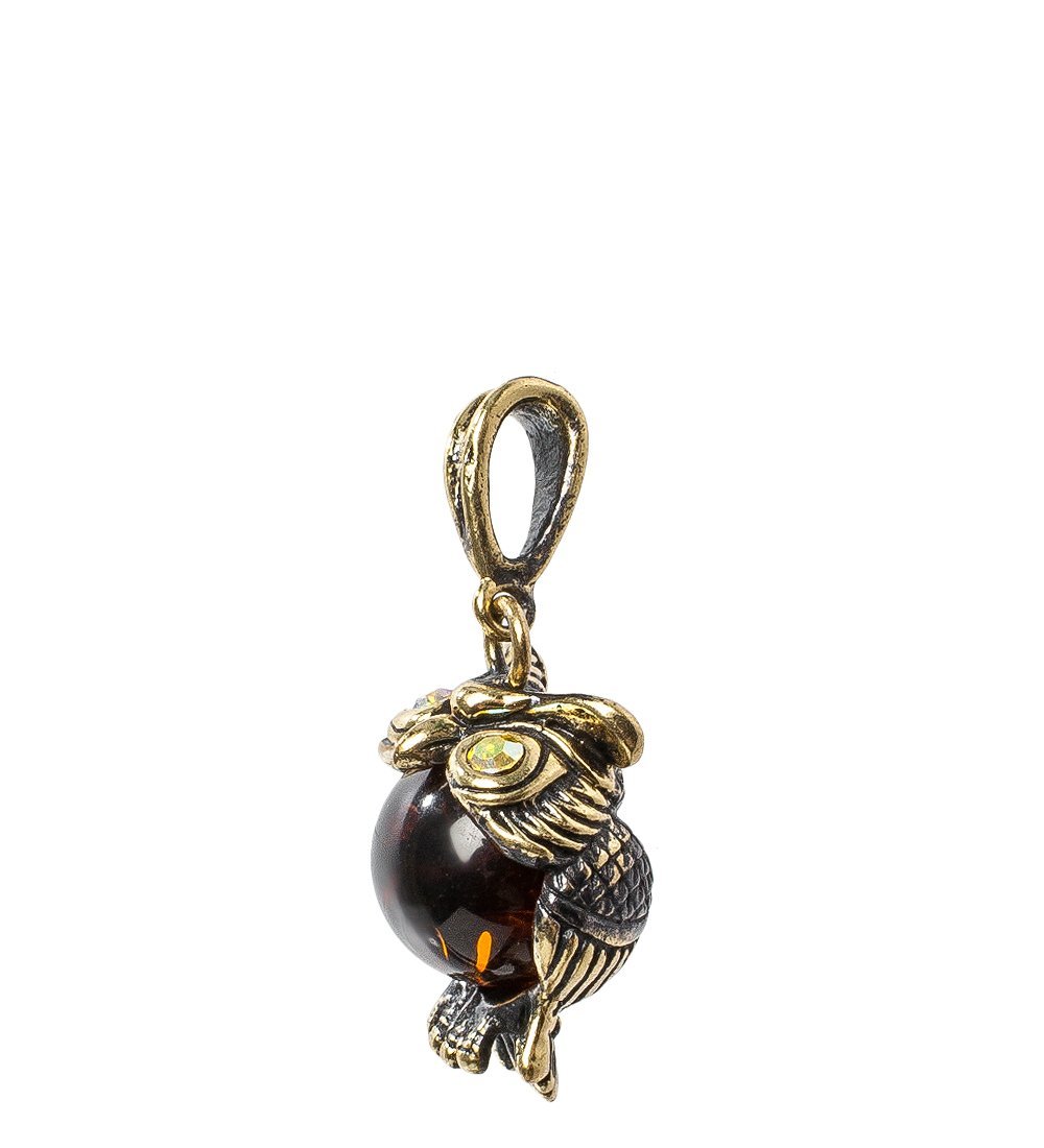 Am- 146 подвеска филин (латунь, янтарь)