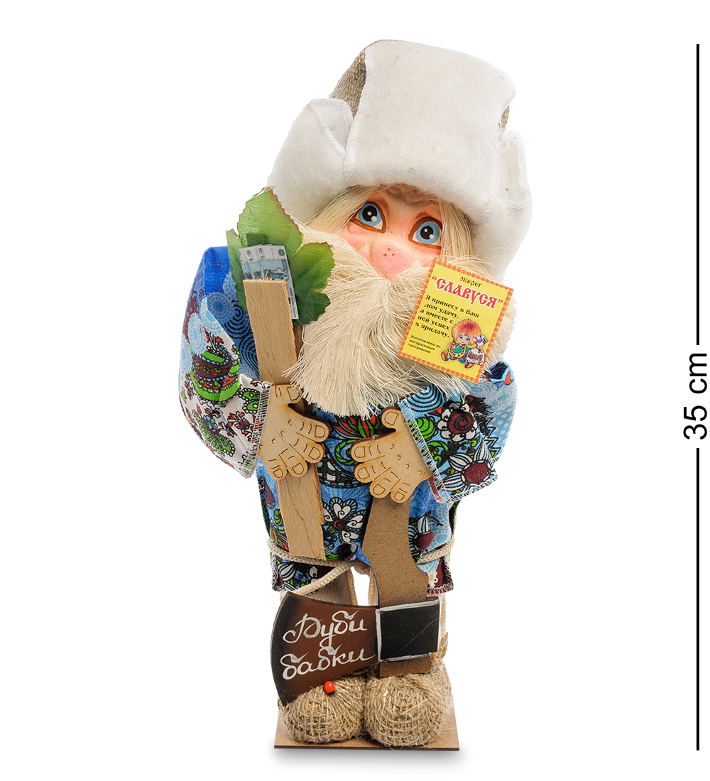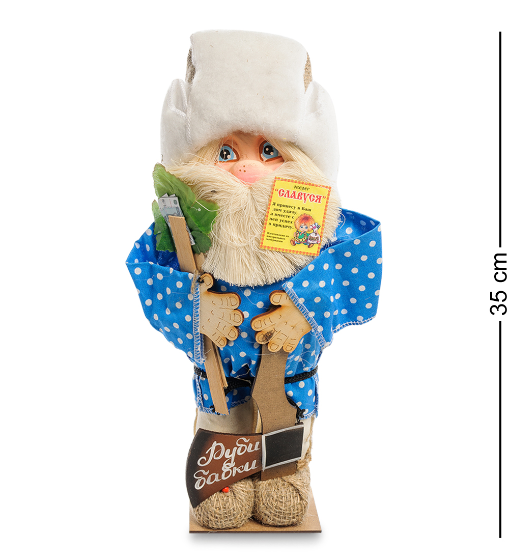 Do-105 домовик славуся в меховой шапке (удачи и успеха). Параметры товара Материал: Лен, хлопок, солома, сизаль, гипс мешковина Страна производства: Россия Страна бренда: Россия Размеры изделия Длина: 14 см; Ширина: 11 см; Высота: 35 см; Вес: 0.44 кг. Размеры упаковки Длина: 19 см; Ширина: 18 см; Высота: 35 см; Вес: 0.4 кг.