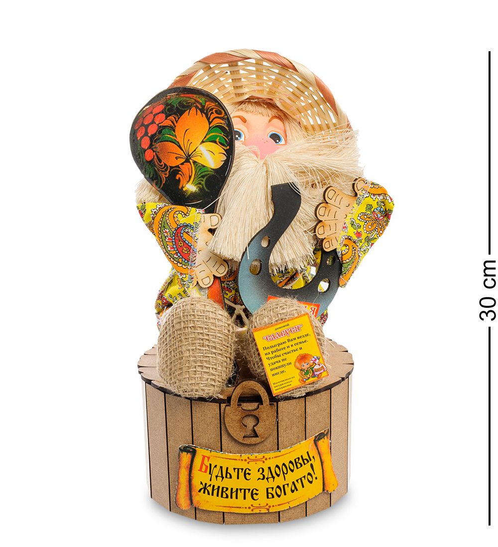 Do-106 домовик славуся (здоровья). Параметры товара Материал: Лен, хлопок, солома, сизаль, гипс мешковина Страна производства: Россия Страна бренда: Россия Размеры изделия Длина: 16 см; Ширина: 13 см; Высота: 30 см; Вес: 0.54 кг. Размеры упаковки Длина: 18 см; Ширина: 18 см; Высота: 32 см; Вес: 0.5 кг.