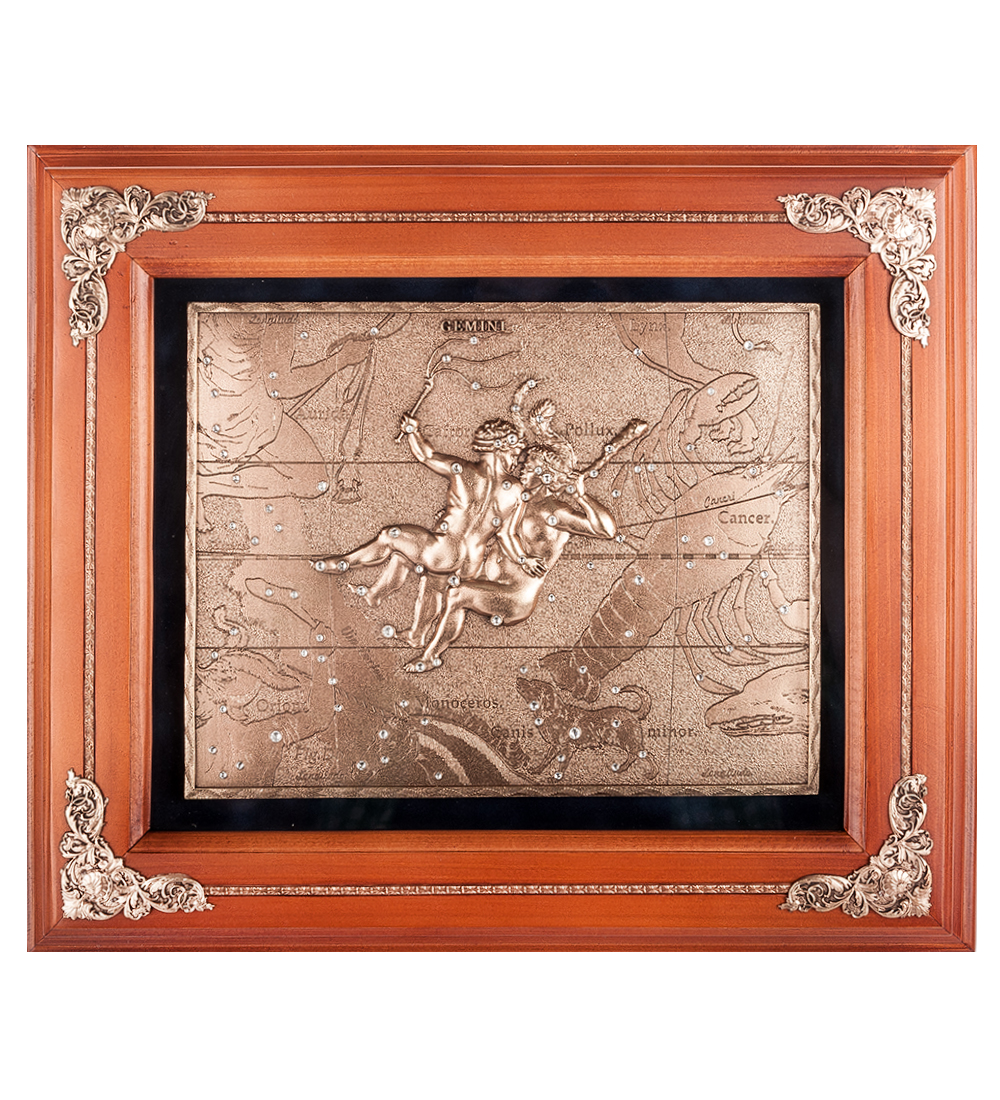 Ключница знак зодиака близнецы. Параметры товара Материал: Медь, дерево, кристалы сваровски, бархат Страна производства: Россия Страна бренда: Россия Размеры изделия Ширина: 33 см; Высота: 29 см; Толщина: 9 см; Вес: 2.3 кг. Размеры упаковки Длина: 35 см; Ширина: 32 см; Высота: 10 см; Вес: 2.5 кг.