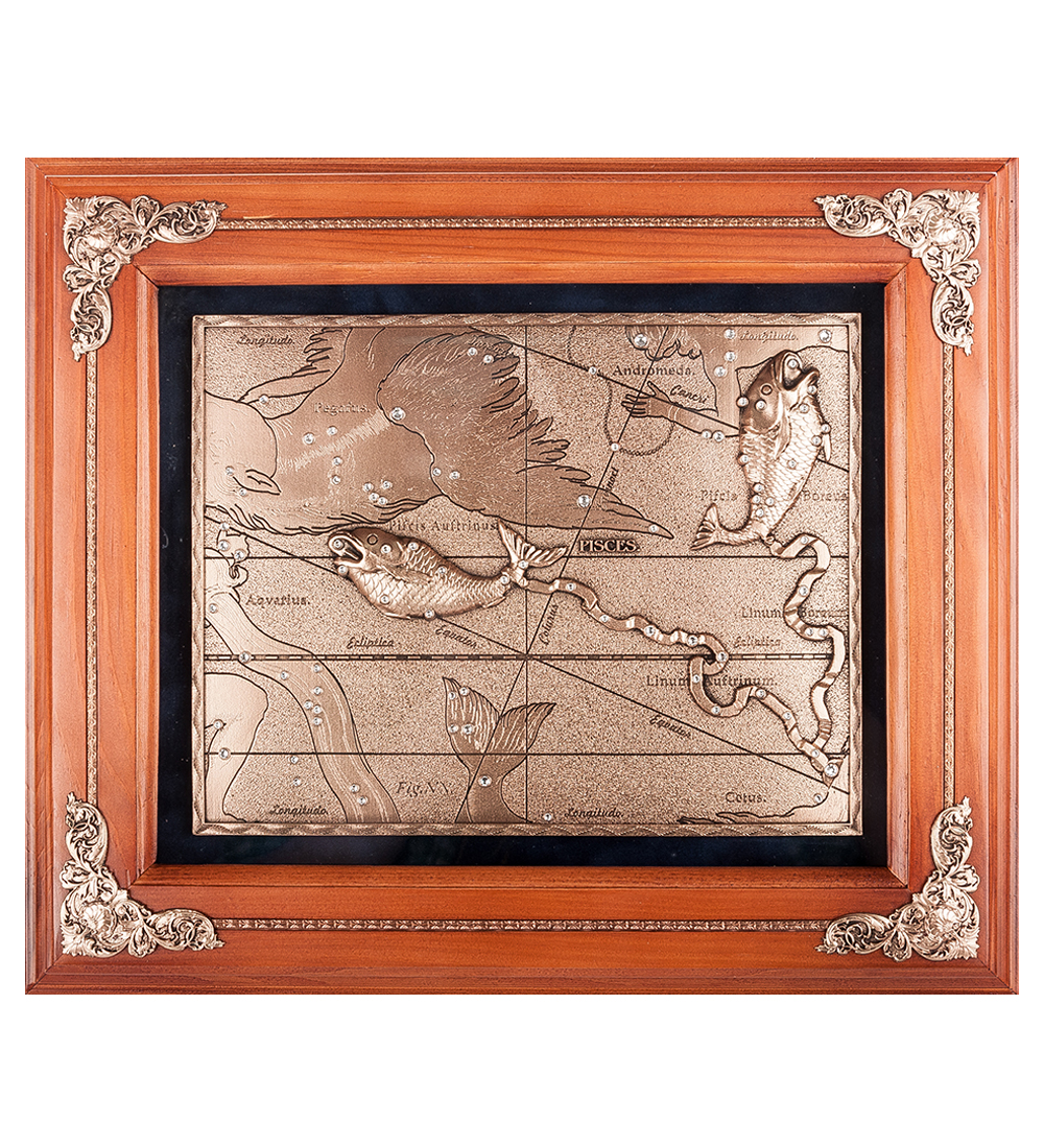 Ключница знак зодиака рыбы. Параметры товара Материал: Медь, дерево, кристалы сваровски, бархат Страна производства: Россия Страна бренда: Россия Размеры изделия Ширина: 33 см; Высота: 29 см; Толщина: 9 см; Вес: 2.3 кг. Размеры упаковки Длина: 35 см; Ширина: 32 см; Высота: 10 см; Вес: 2.602 кг.