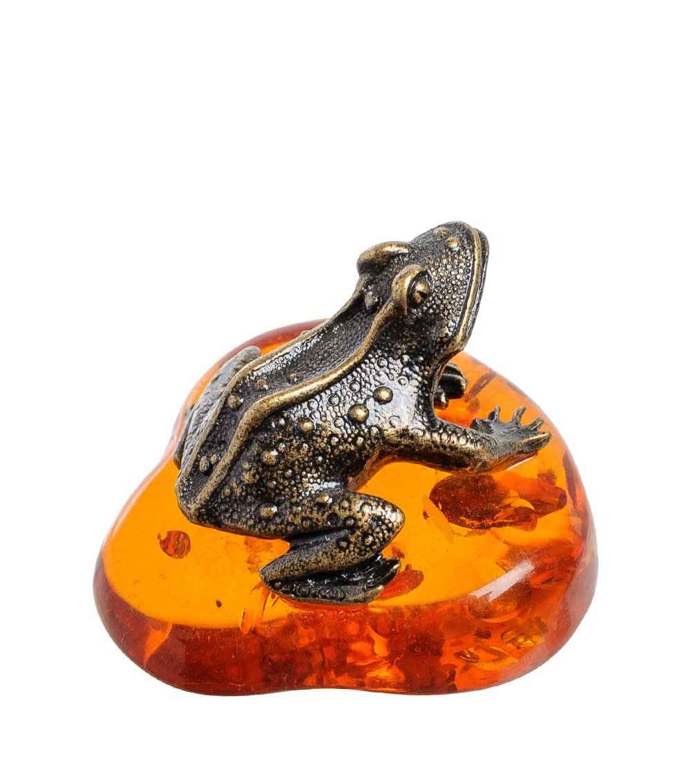 Am- 786 фигурка лягушка квака (латунь, янтарь)