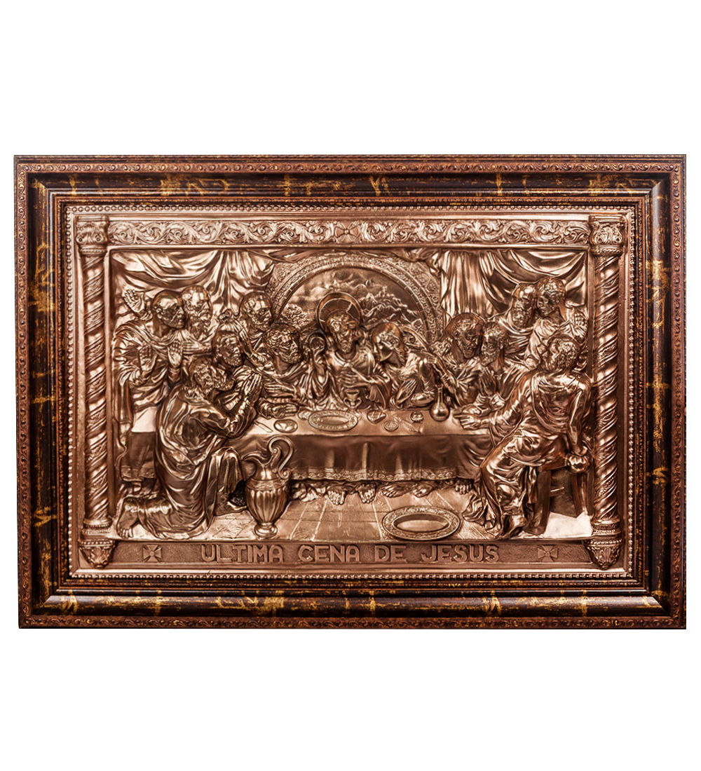 Панно тайная вечеря. Параметры товара Материал: Медь, пластик Страна производства: Россия Страна бренда: Россия Размеры изделия Ширина: 85 см; Высота: 61 см; Толщина: 5 см; Вес: 3.6 кг. Размеры упаковки Длина: 86 см; Ширина: 62.5 см; Высота: 5 см; Вес: 4.3 кг.