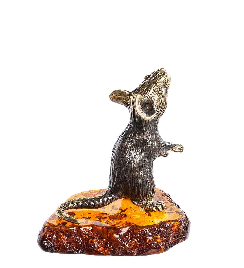 Am-397 фигурка крыса на подставке (латунь, янтарь)
