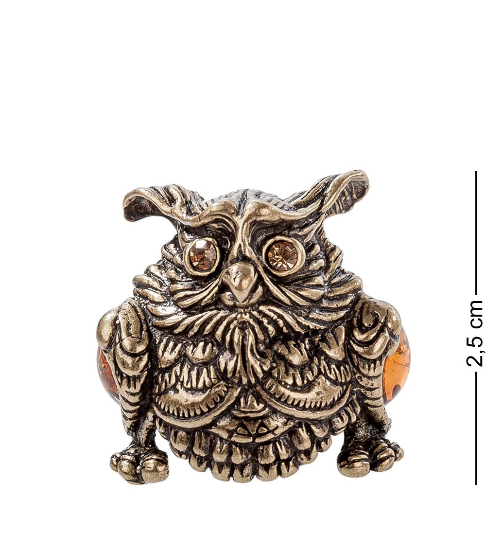 Am-454 фигурка мудрая сова (латунь, янтарь)