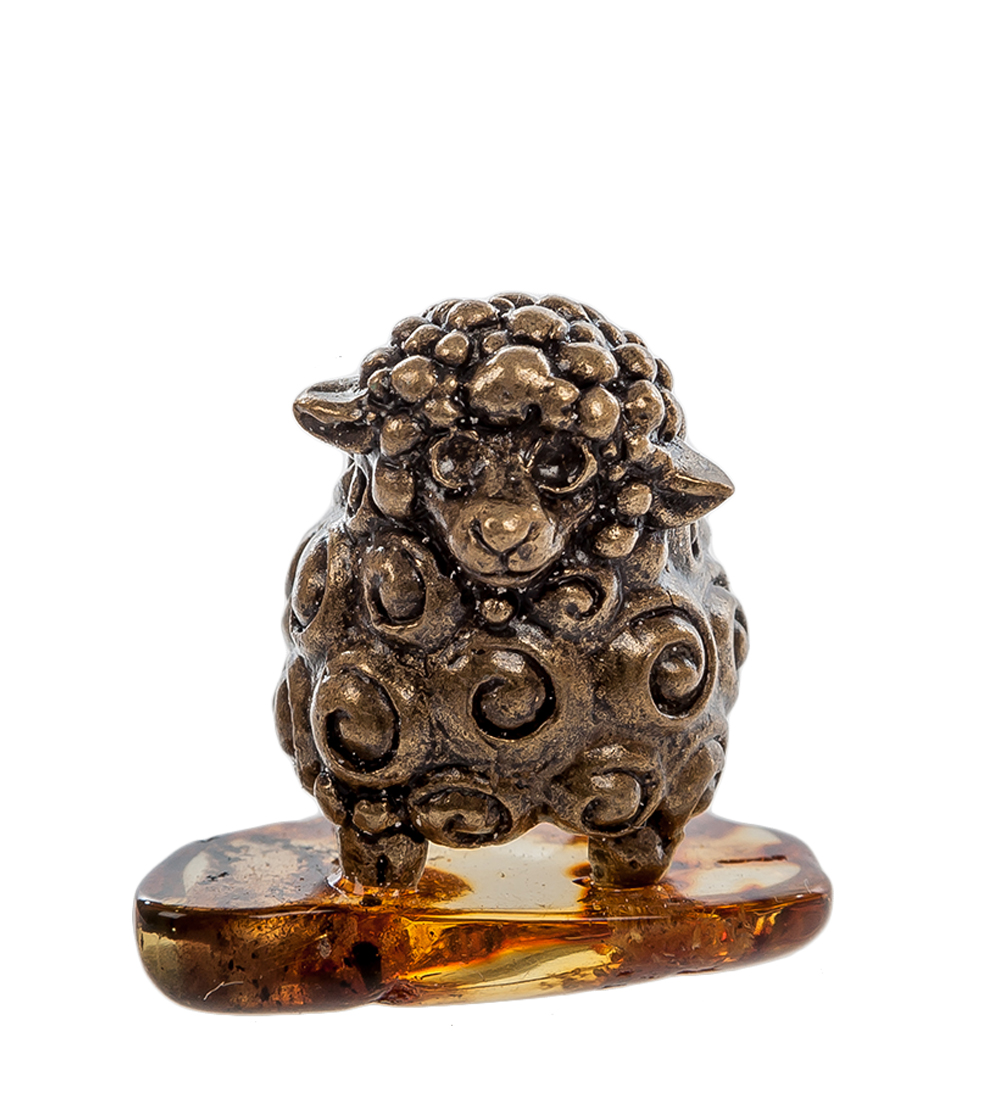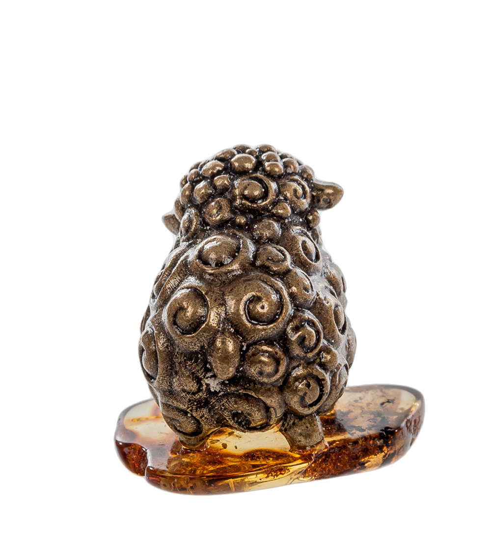 Am-490 фигурка овца (латунь, янтарь нат.)