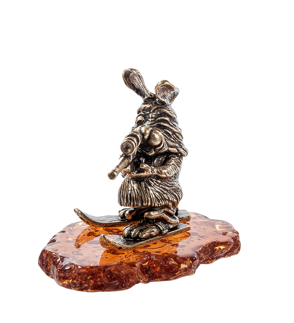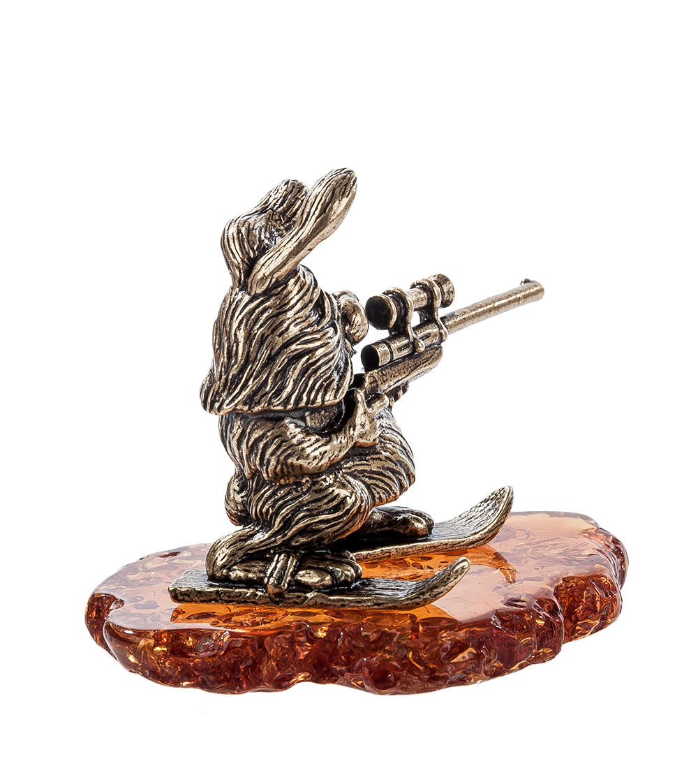 Am-302 фигурка заяц-биатлонист (латунь, янтарь)