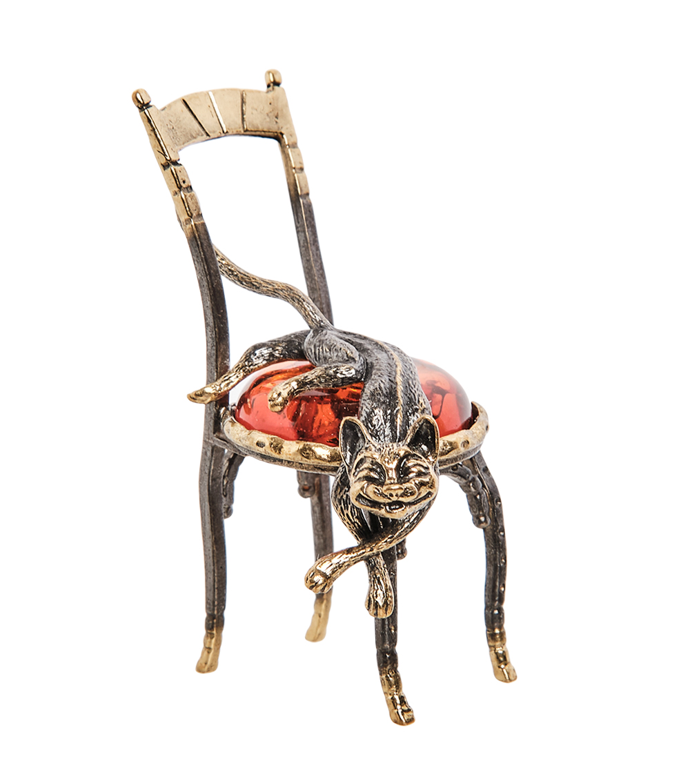 Am- 365 фигурка кот на стуле (латунь, янтарь)