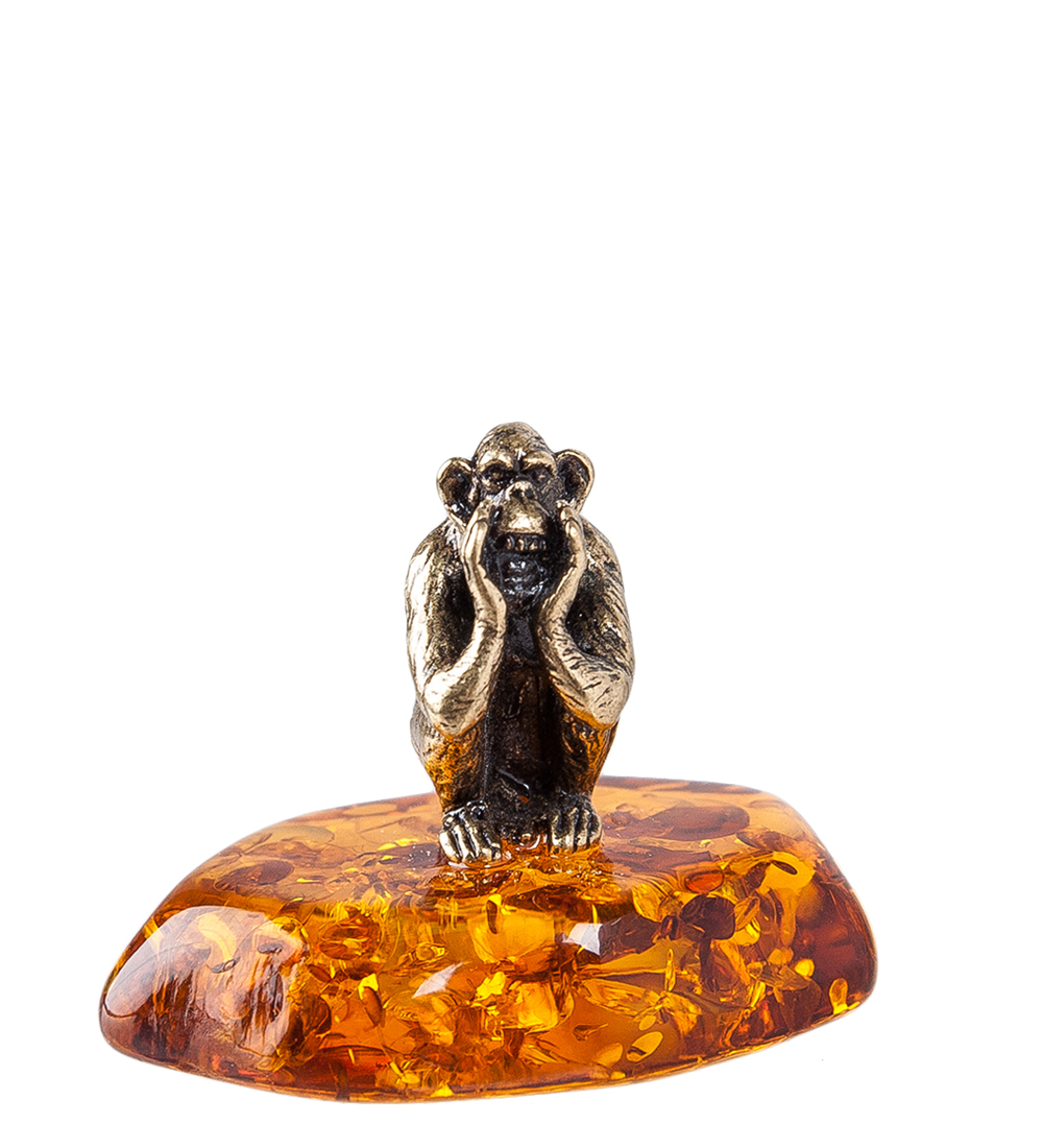 Am-704 фигурка обезьяна-все расскажу (латунь, янтарь)