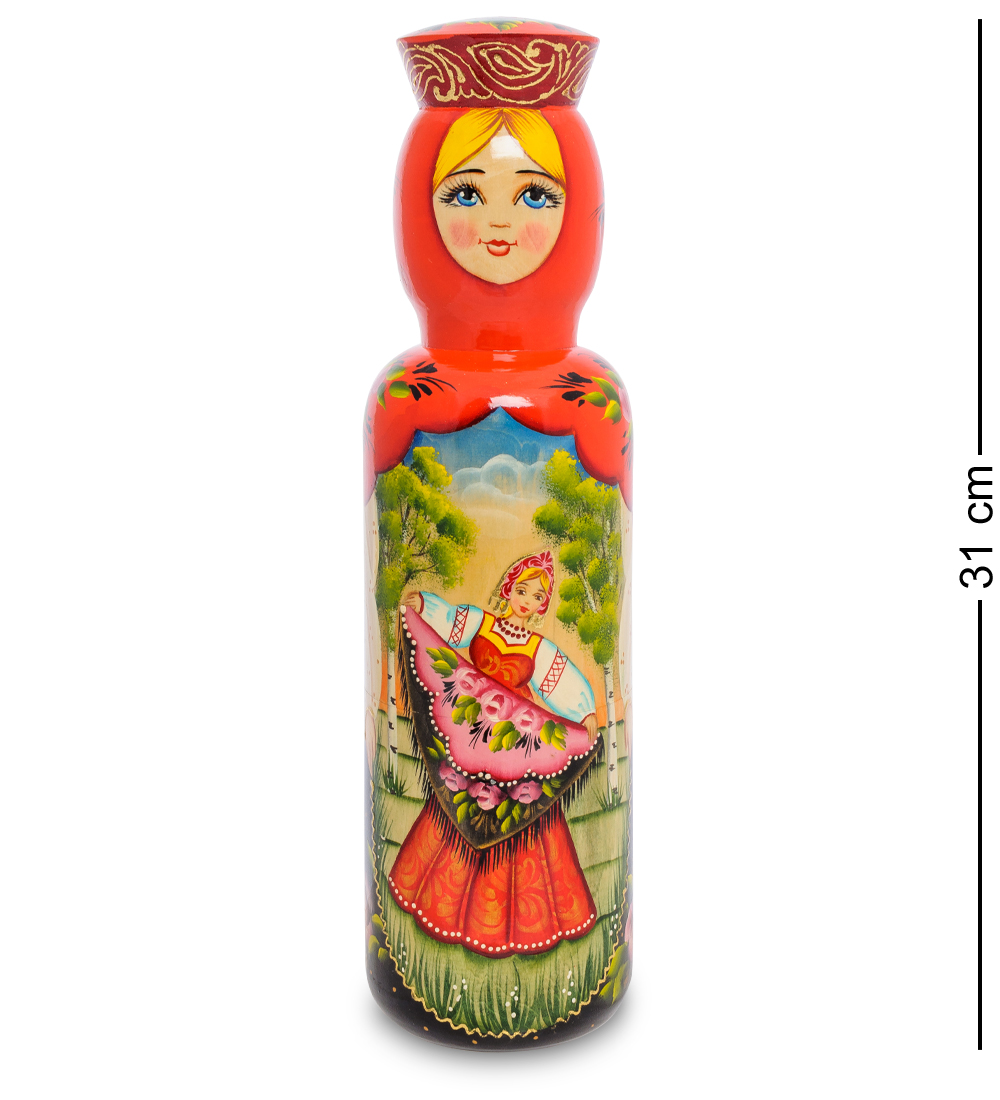 Мр-25/ 65 футляр для бутылки маша. Параметры товара Материал: Дерево липа, краски,лак Страна производства: Россия Размеры изделия Длина: 9 см; Ширина: 9 см; Высота: 32 см; Вес: 0.3 кг. Размеры упаковки Длина: 9 см; Ширина: 9 см; Высота: 32 см; Вес: 0.3 кг.
