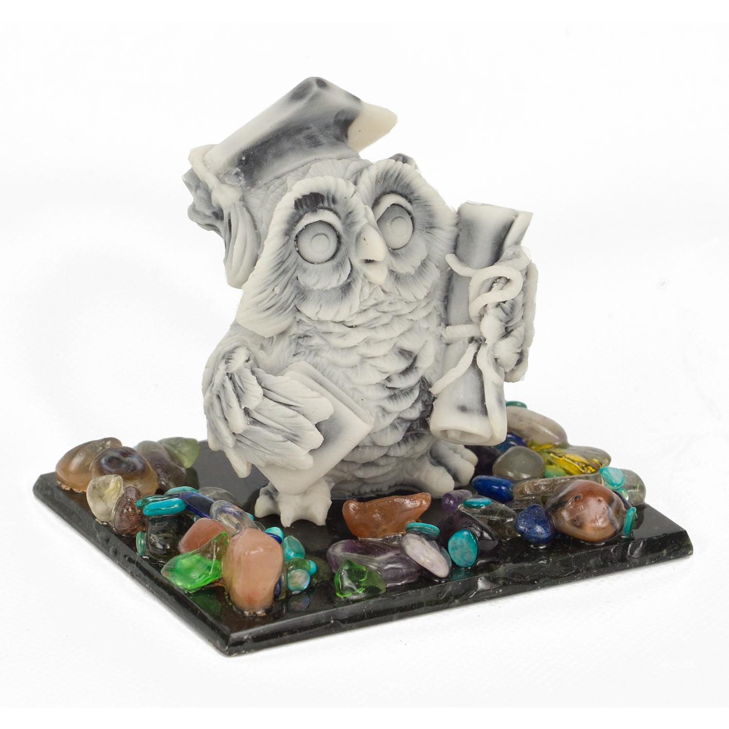 Сувенир "филин ученый" змеевик мрамолит самоцветы 80х60х70 мм 13