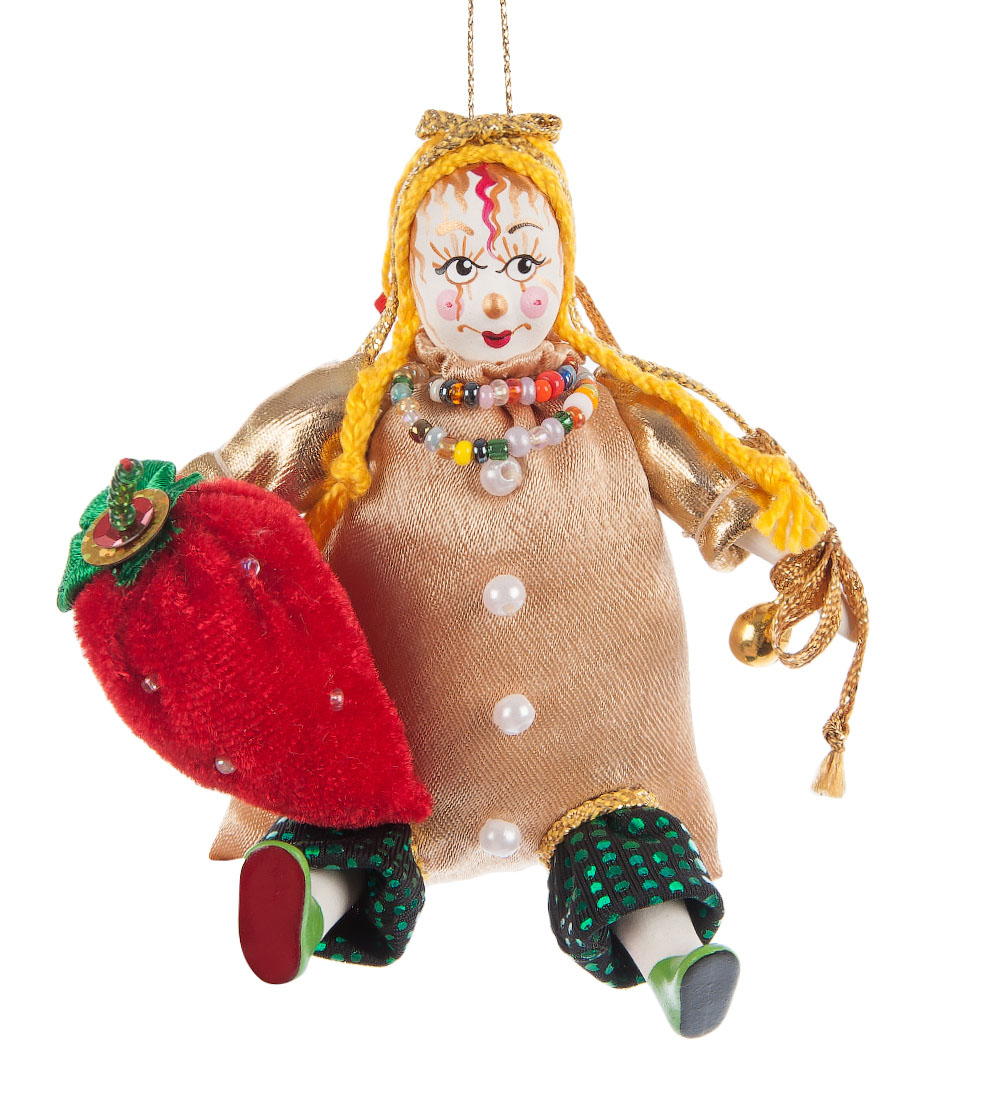 Rk-488 кукла подвесная шут с клубникой. Параметры товара Материал: Фарфор, текстиль Страна производства: Россия Размеры изделия Ширина: 8.5 см; Высота: 9 см; Вес: 0.028 кг.