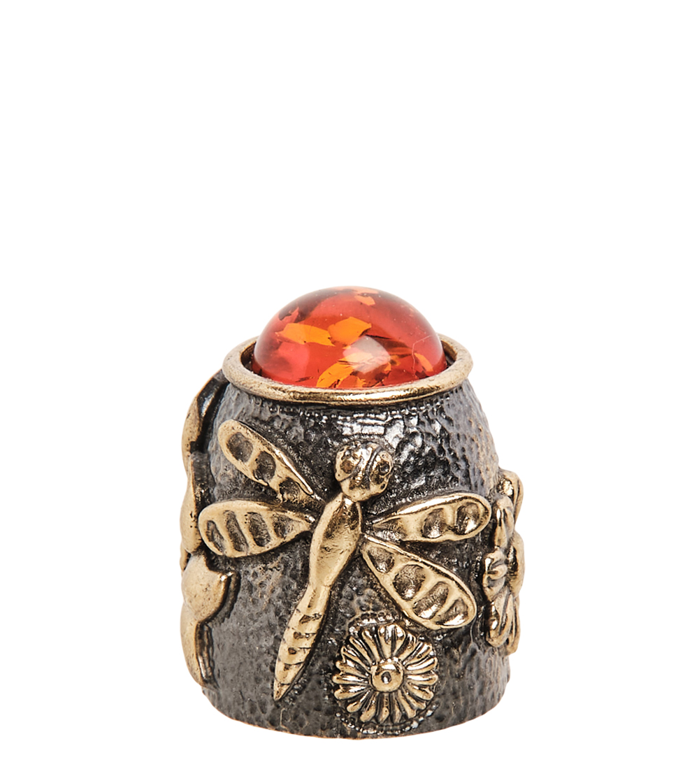 Am- 640 наперсток бабочка (латунь, янтарь)