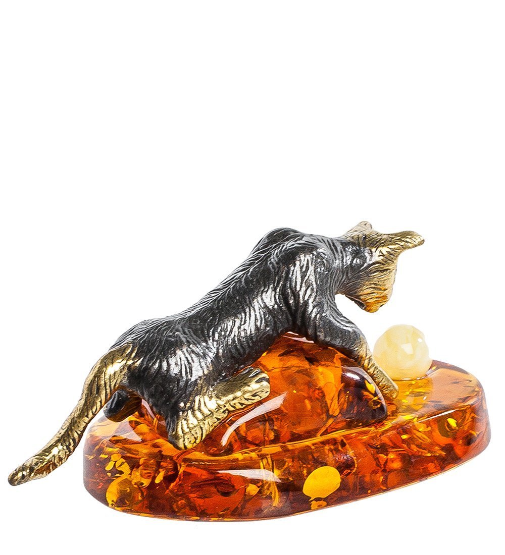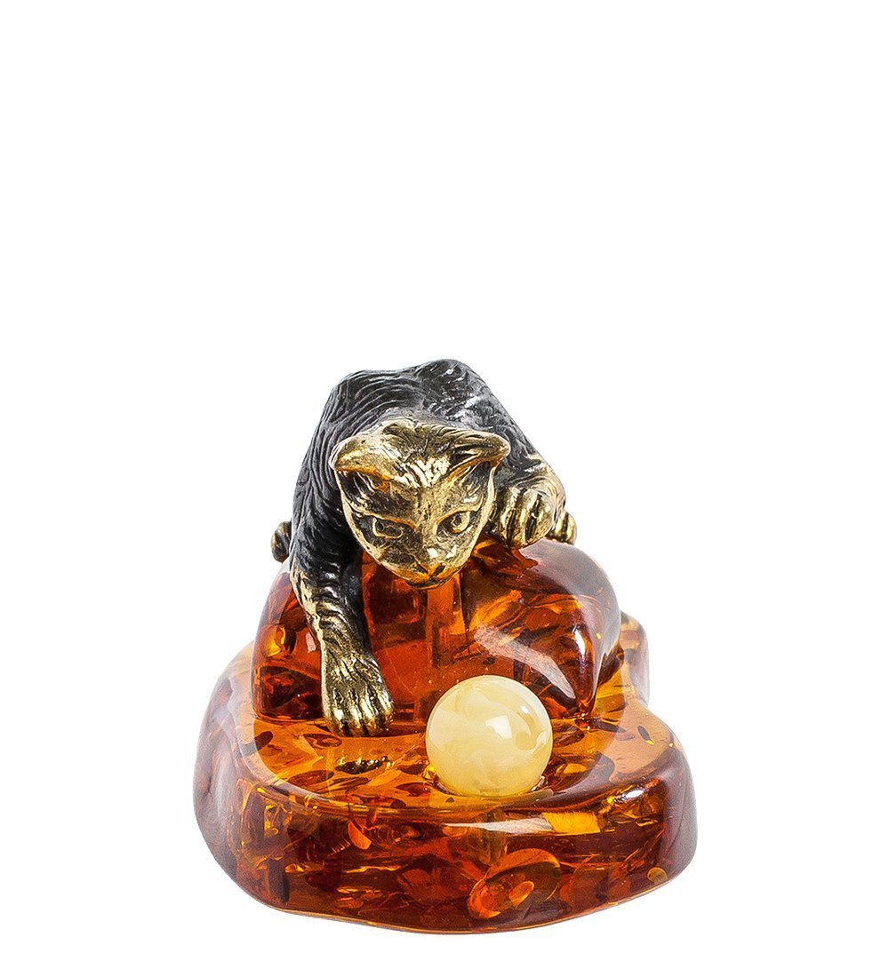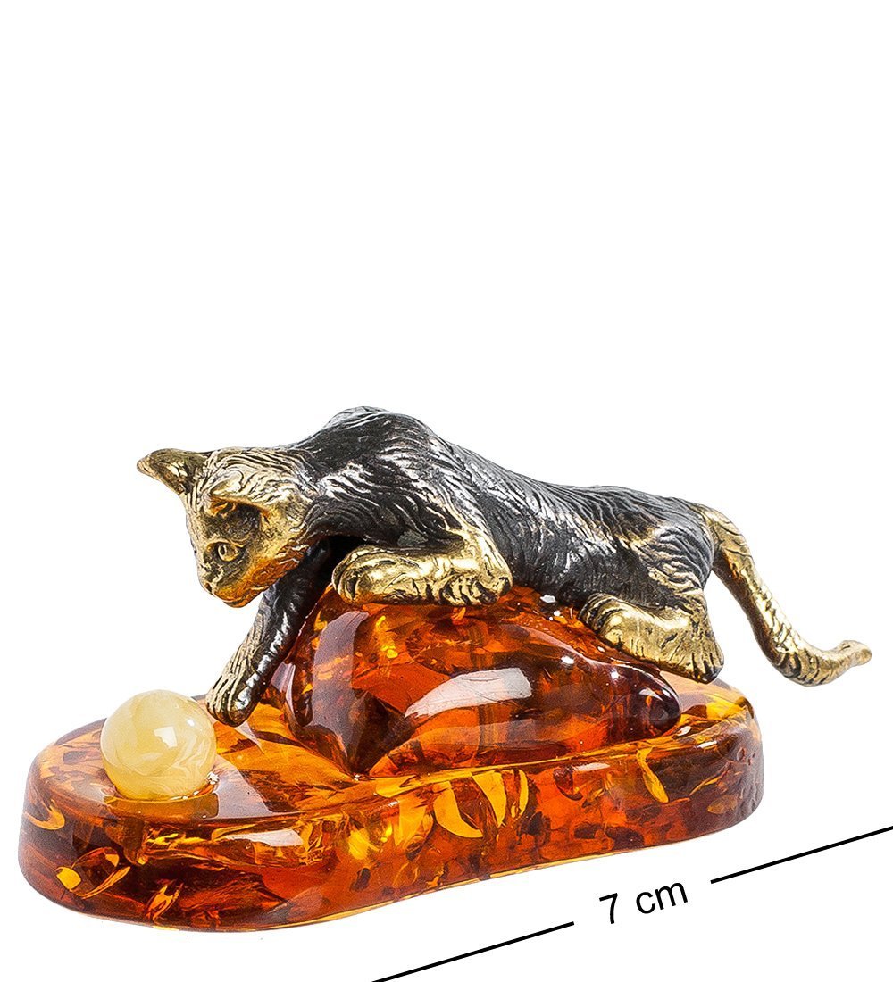 Am- 685 фигурка игривый кот на подушке (латунь, янтарь)