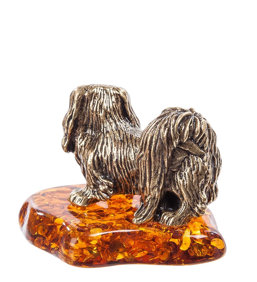 Am- 698 фигурка пекинес (латунь, янтарь)