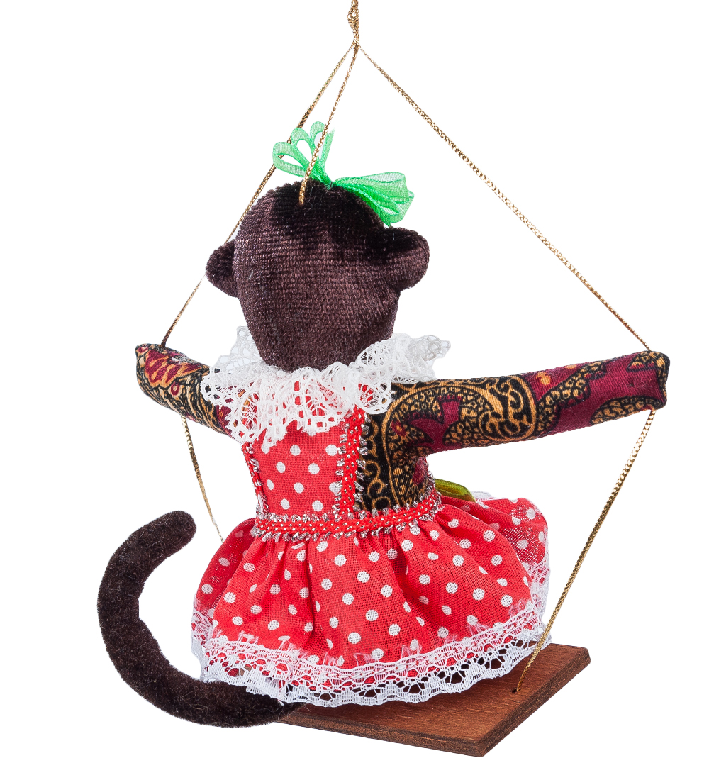 Rk-738 кукла подвесная обезьяна на качелях. Материал: Фарфор, текстиль Страна производства: Россия Размеры изделия: Длина: 14 см Ширина: 9 см Высота: 12 см Вес: 0.05 кг. Размеры упаковки: Длина: 14 см Ширина: 9 см Высота: 12 см Вес: 0.05 кг.  развернуть описание ▼