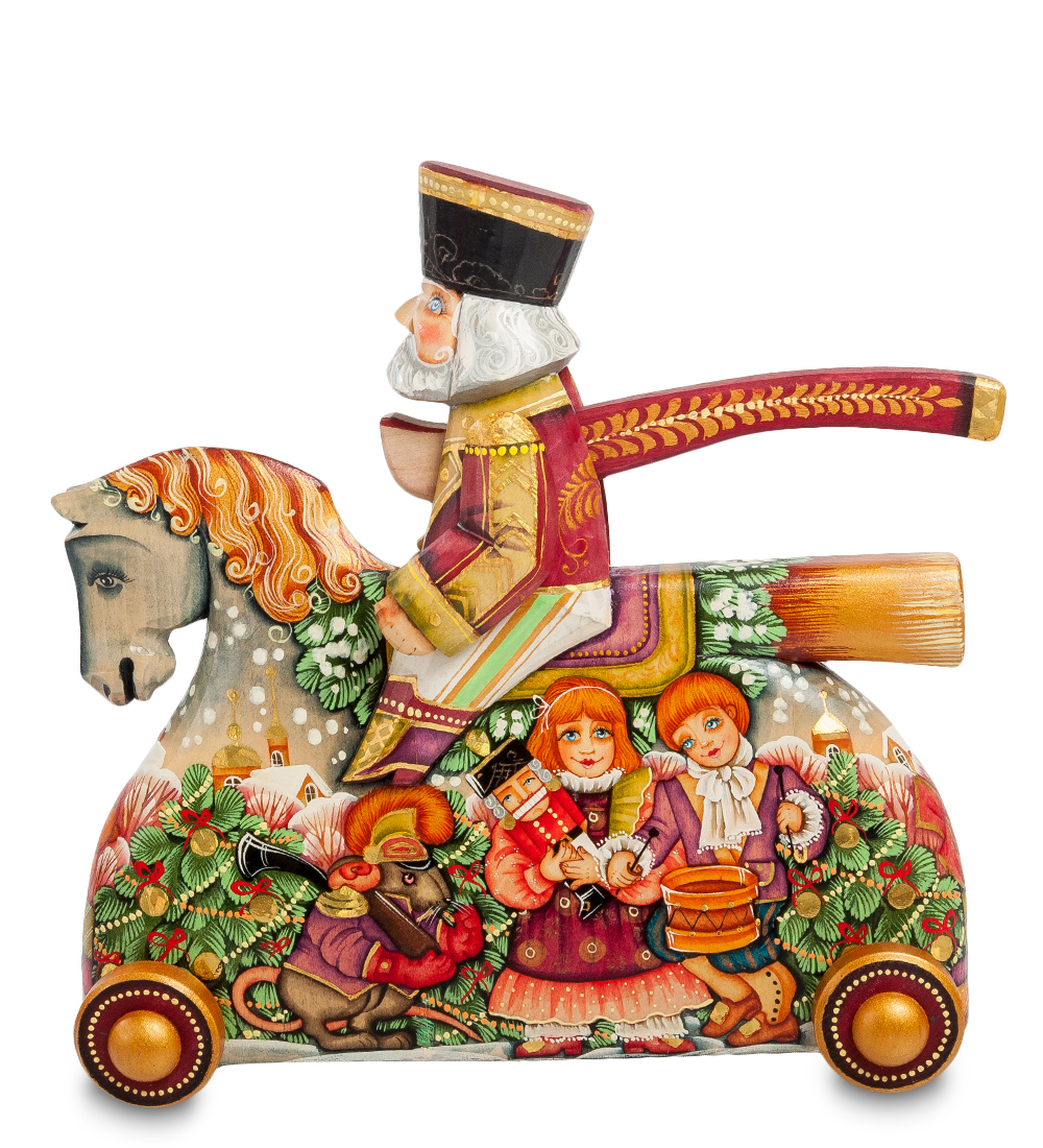 Фигурка резная щелкунчик на коне художественная роспись. Материал: дерево, акриловая краска Страна производства: Россия Размеры изделия: Длина: 23 см Ширина: 7.8 см Высота: 22.5 см Вес: 0.51 кг. Размеры упаковки: Длина: 23 см Ширина: 7.8 см Высота: 22.5 см Вес: 0.51 кг.  развернуть описание ▼