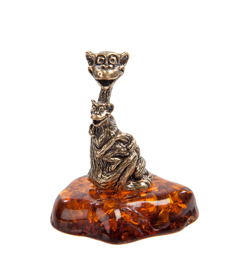 Am-747 фигурка обезьянка с детенышем (латунь, янтарь)