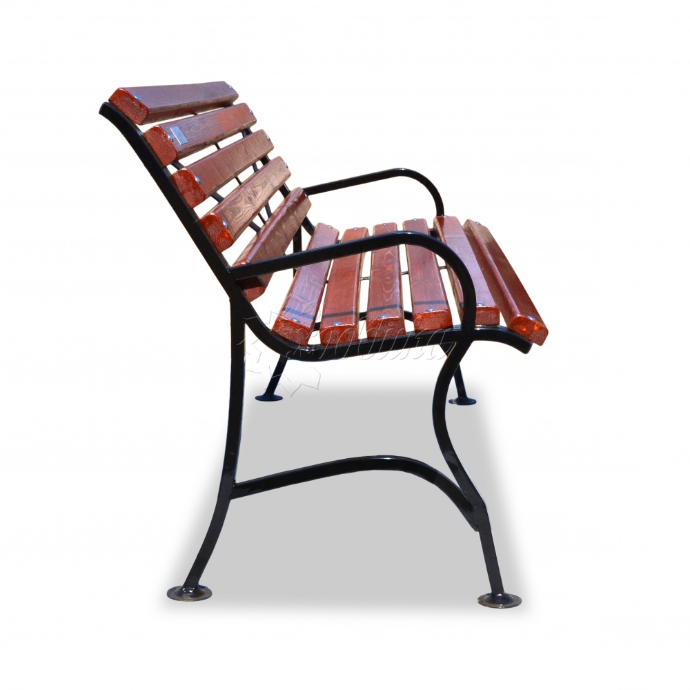 Скамейка «элегант» 1,2 м. Подробные характеристики Скамейка поставляется в разобранном виде! Материалы: Опоры: Cталь. Покрыты порошковой полимерной краской. Возможность выбора цвета по каталогу RAL. Стандартный цвет (по умолчанию) - черный. Сиденье и спинка: Брус из хвойных пород древесины - ангарская сосна (варианты исполнения: лиственница, композитные материалы) различного сечения. Огнебиозащитные пропитки + тонировочный состав с антисептиком + два слоя яхтного лака с промежуточным шлифованием. Возможность выбора цвета из палитры. Фурнитура: Оцинкованная. Возможность выбора цвета фурнитуры по каталогу RAL. Стандартный цвет (по умолчанию) - серебристый. Возможность использования потайной/скрытой фурнитуры. Технические характеристики: Высота: 830 мм Ширина: 600 мм Длина: 600 - 3000 мм Высота сиденья: 460 мм Ширина сиденья: 430 мм Длина посадочного места: 600 - 3000 мм Вес версии 0.6 м: 12 кг Вес версии 1.2 м: 18 кг Вес версии 1.5 м: 21 кг Вес версии 1.8 м: 23,5 кг Вес версии 2.0 м (2 опоры): 25 кг Вес версии 2.0 м (3 опоры): 28 кг Вес версии 2.5 м (3 опоры): 33,5 кг Вес версии 3.0 м (3 опоры): 37,8 кг О модели Производство скамейки Элегант доступно в нескольких исполнениях. Вы можете выбрать скамейку с подлокотником, без подлокотника или заказать удобное садовое кресло. Скамейка Элегант будет удачным решением для размещения обеденной зоны или зоны отдыха под открытым небом благодаря возможности подбора мебели в едином стиле. Мы можем предложить садовый стол Элегант, кресло или удобную лавочку без спинки, что позволяет получить единообразие в оформлении садового участка и обеденной зоны. Варианты цвета на выбор: , махагон, палисандр, тик,