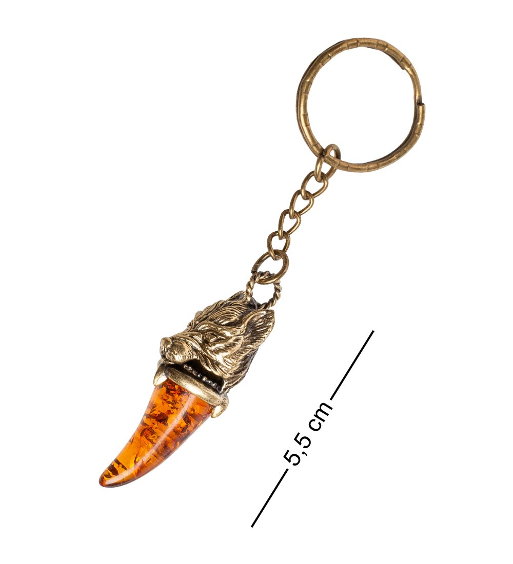 Am- 825 брелок клык волка (латунь, янтарь)