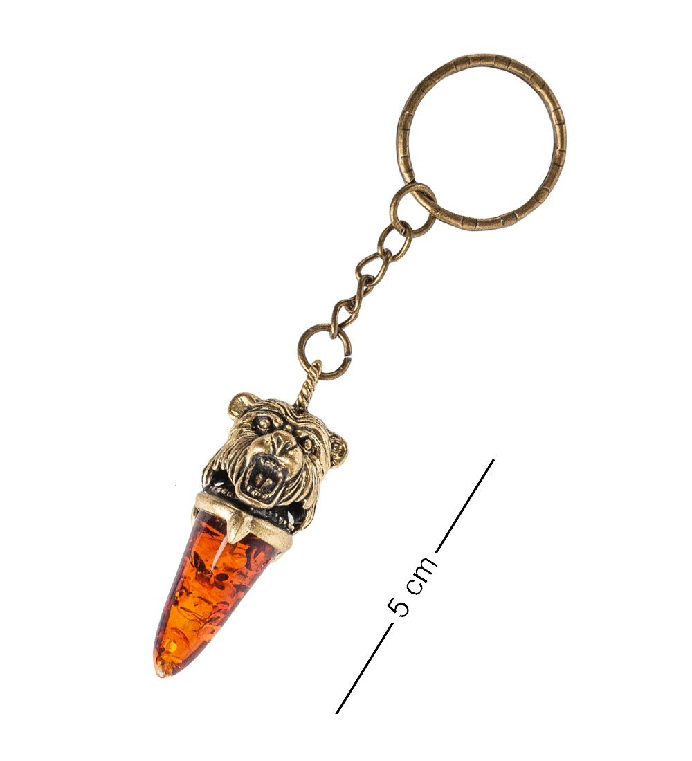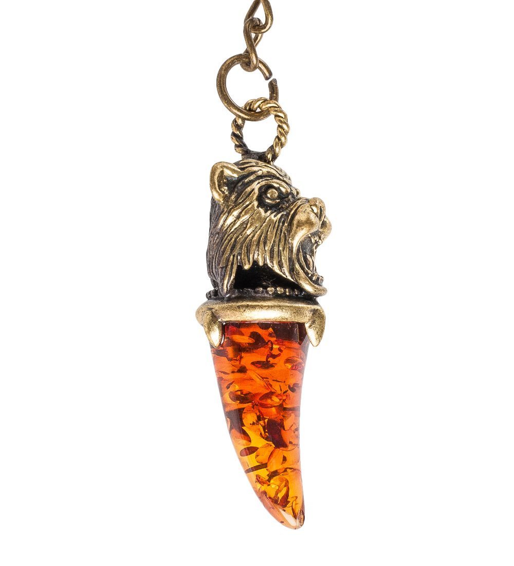 Am- 827 брелок клык медведя (латунь, янтарь)