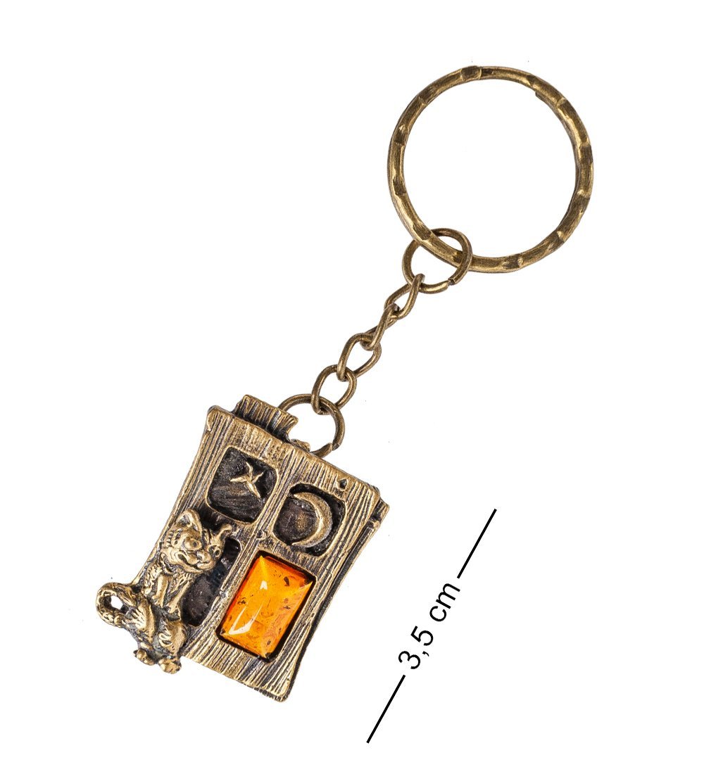 Am- 829 брелок кот в окошке (латунь, янтарь)